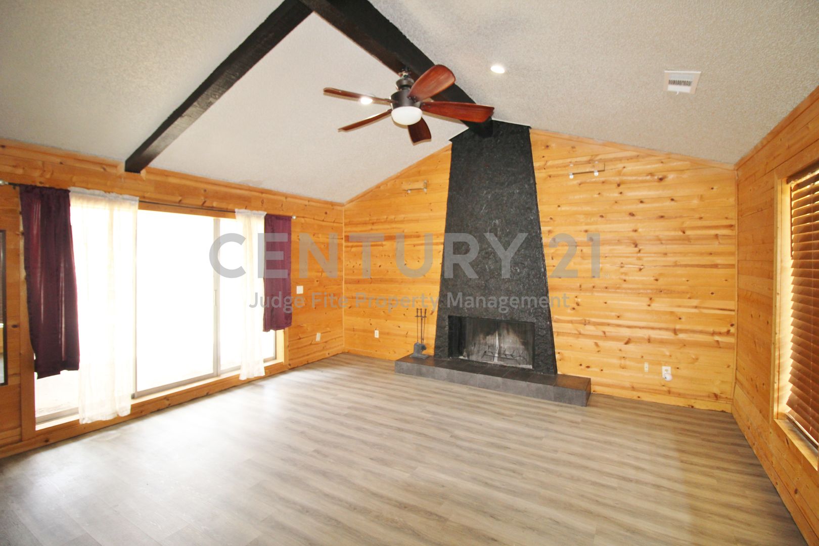 Rustic charm meets modern elegance! Escape to this stunning 5-bedroom, 2-bath home that perfectly balances rustic character with contemporary upgrades. From the moment you pull up to the sprawling, tree-lined lot, you’ll feel the peace of country living without sacrificing style. The spacious great room makes a statement with vaulted ceilings, a bold floor-to-ceiling black stone fireplace, and warm wood-paneled walls that create an inviting, lodge-like atmosphere. The fully renovated kitchen features a massive island with quartz countertops, sleek white cabinetry, stainless steel appliances, and sliding glass doors that lead to the backyard. Your primary suite is a spacious retreat featuring plush carpeting, and an ensuite bath with updated dual vanity and modern tile work. Four well-sized guest rooms, including one with a stylish ship-lap wall, offer plenty of space for family, guests, or a home office. Situated on a generous lot with mature trees, a 2-story finished out man cave or she shed with electric, and a second shed that provides secure storage for equipment and tools. This home offers exceptional versatility with indoor and outdoor areas designed for comfortable living. Whether you need room to spread out, space for hobbies, or a yard for pets to roam, this property has it all! Owner must approve all pets.