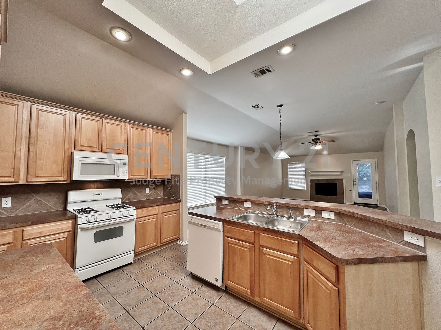 MOVE-IN SPECIAL! $325.00 OFF YOUR 2ND MONTH'S RENT! This charming 3-bedroom, 2-bathroom home with a 2-car garage is tucked away on a lot that backs up to a peaceful greenbelt, offering added privacy and a scenic view. Located in the highly sought-after Mansfield ISD, the home features a spacious and versatile floorplan with three living areas—one of which could easily function as a home office or flex space. The family room includes a cozy fireplace, while the beautiful island kitchen is highlighted by a skylight, tile backsplash, breakfast bar, and comes equipped with a gas range, dishwasher, built-in microwave and disposal. The primary suite offers a relaxing retreat with a garden tub, separate shower, and a walk-in closet. Outside, enjoy a fenced backyard with an open patio, ideal for outdoor lounging or entertaining. Additional features include ceiling fans throughout, an alarm system, a full-size utility area, and more. Owner must approve all pets.