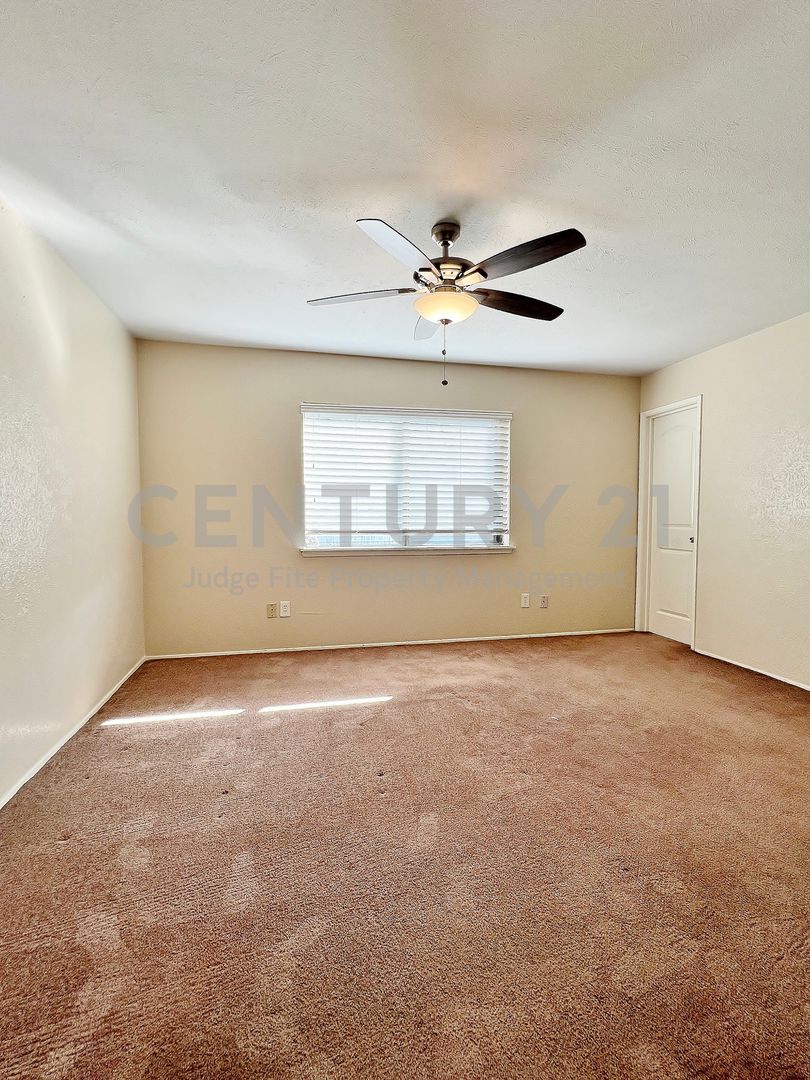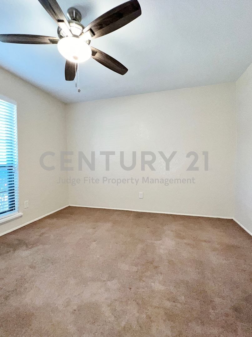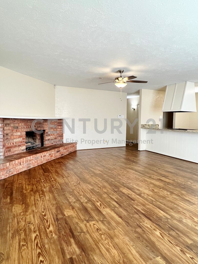 Tastefully updated 3/2/2 with large open floorplan makes entertaining a breeze. Light & bright living area features a corner brick WBFP. Galley style kitchen offers a dishwasher, disposal, and stove. Your primary suite includes a walk-in closet and ensuite bath. Large fenced backyard, full size utility area, ceiling fans throughout and more. Great location with lots of shopping and entertainment nearby. Come see your new home today! Owner must approve all pets.