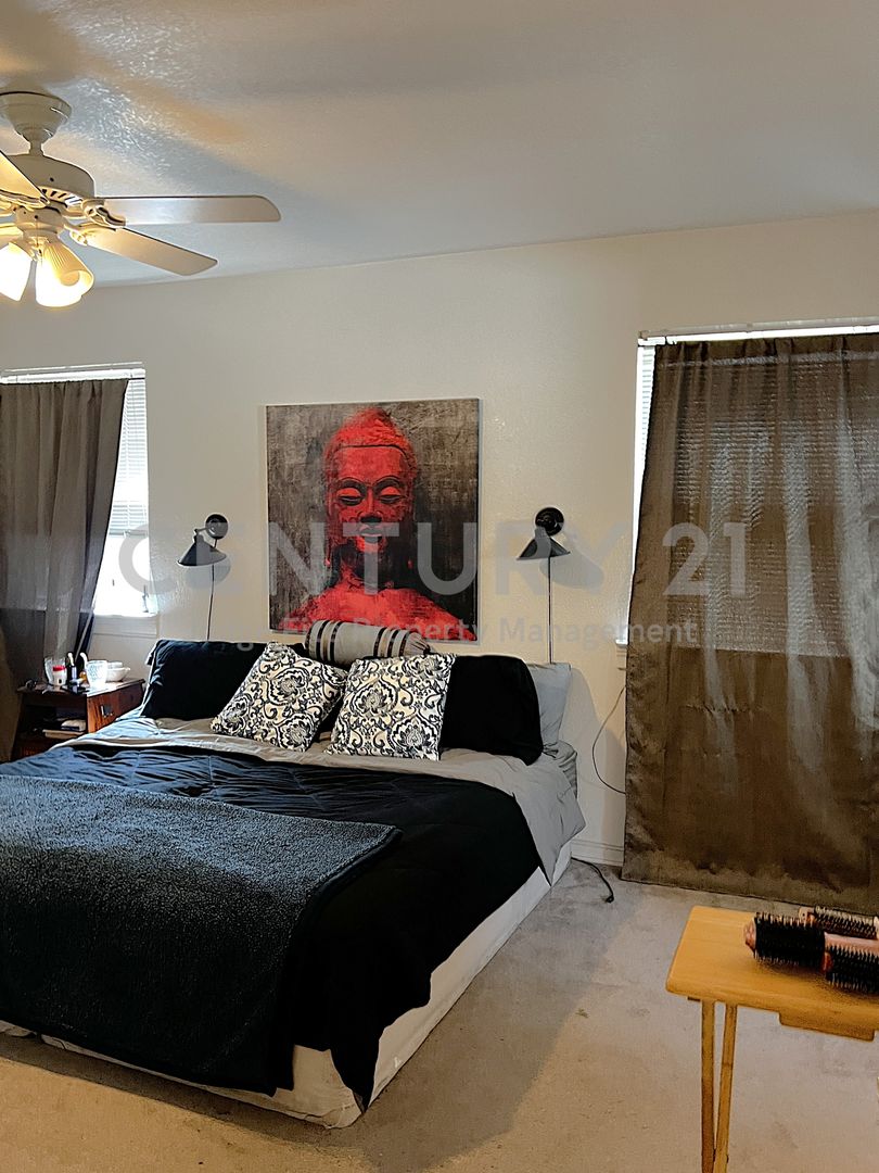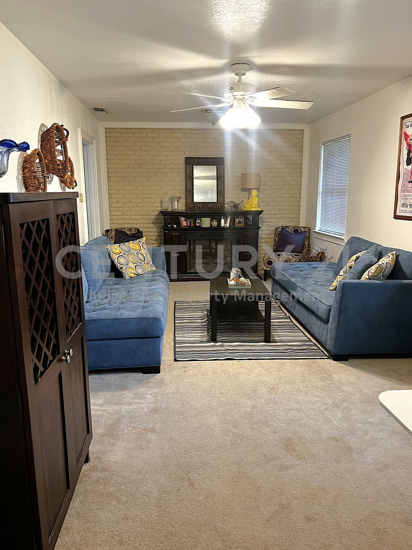 Charming 3-bedroom, 2-bath home with a 2-car garage and a generous fenced backyard featuring an open patio, detached storage shed, and a dedicated gardening area. Inside, you’ll find spacious living and dining rooms, a kitchen with a convenient breakfast bar, and appliances including a dishwasher, disposal, oven, and separate cooktop. Fresh carpet and neutral finishes throughout, plus ceiling fans in every room for added comfort. Owner must approve all pets.
