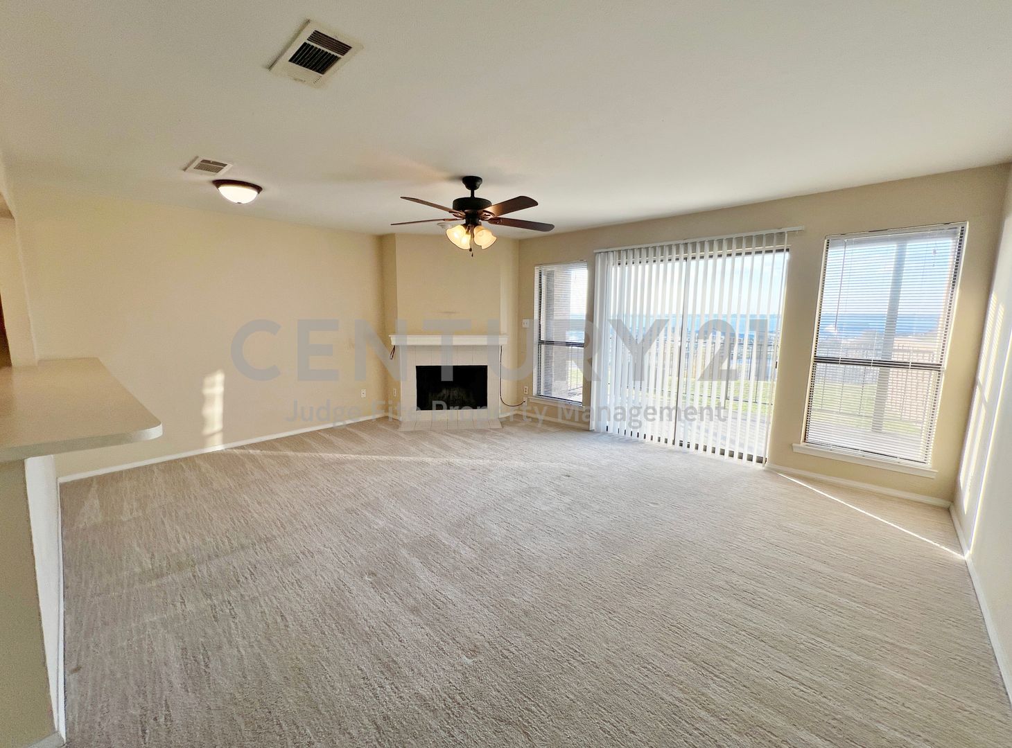 First floor 2/2 unit with fabulous lake views! Vaulted ceilings and tons of windows give a bright and spacious feel. Sit on the covered patio and enjoy lake views and sunsets. Open floor plan with a WBFP in the living area. Kitchen includes a dishwasher, disposal, freestanding microwave, stove and refrigerator. Primary suite with walk-in closet and direct access to the patio. Nice sized guest bedroom also features a walk-in closet. In addition to the covered patio, there is a spacious covered balcony to enjoy the sunsets. Only pets under 25lbs allowed with owner approval, preferably no cats. 12 month lease term only.