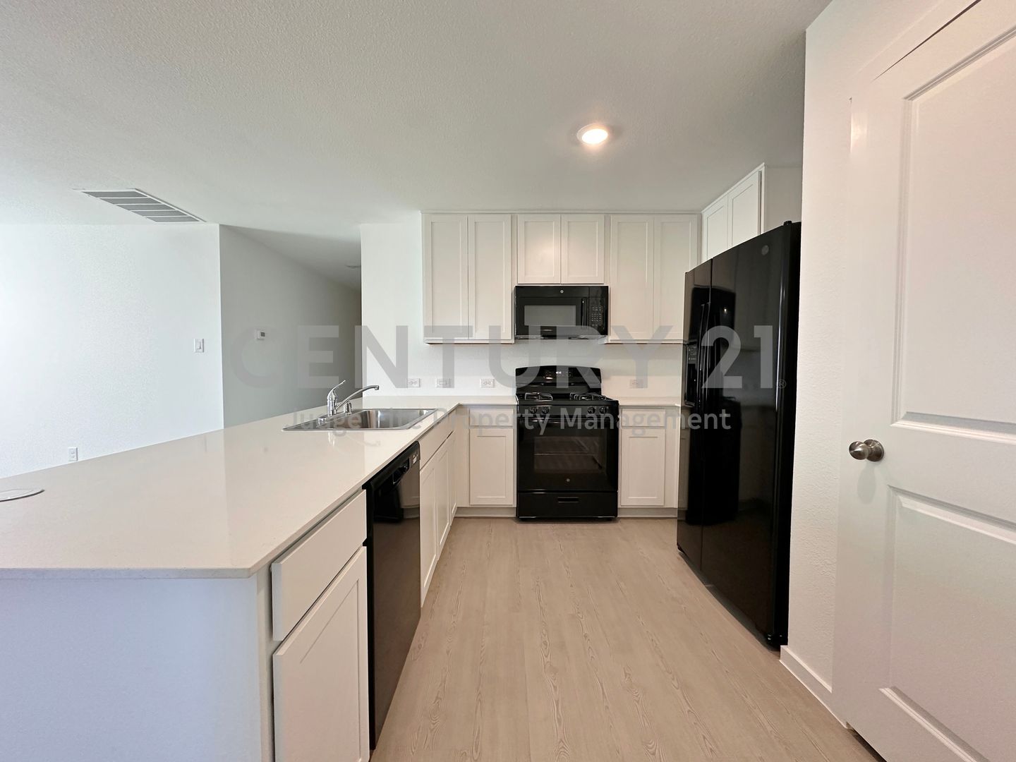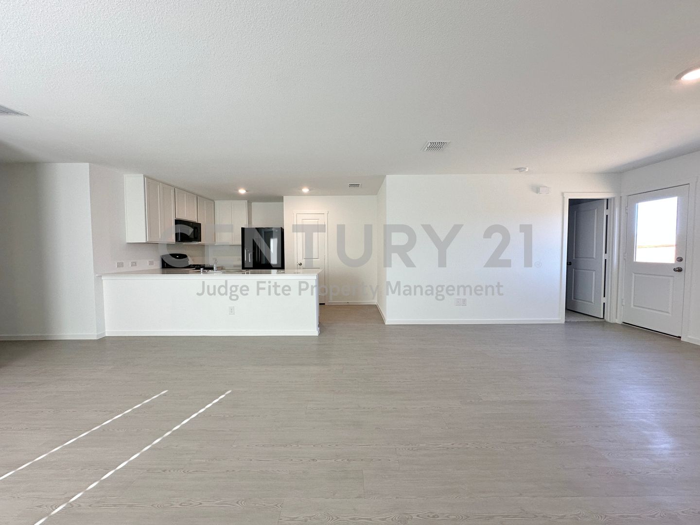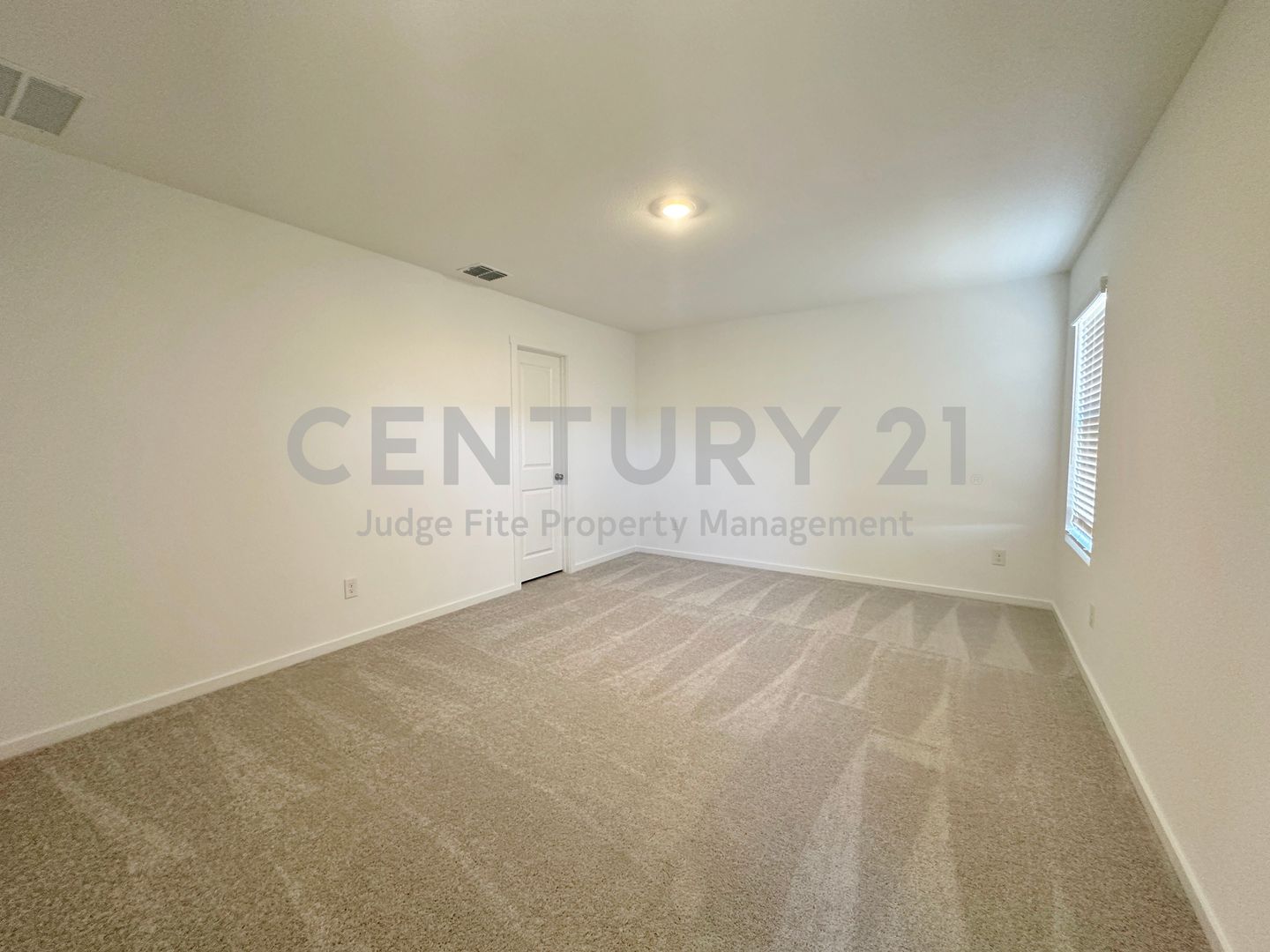 Be the very first to call this stunning, newly constructed home yours. This rare opportunity offers a never-occupied residence with modern construction, quality finishes, and a fresh new-home feel throughout. The expansive open living area features durable wood-look flooring and large windows that fill the space with natural light. The chef-inspired kitchen includes sleek white cabinetry, a spacious prep area with breakfast bar, and a full suite of modern black appliances. The split-bedroom floor plan provides added privacy. The generous primary suite features plush carpeting, a large walk-in closet with custom shelving, and a private ensuite bathroom with a modern walk-in shower. Step outside to a large fenced backyard—perfect for outdoor relaxation or weekend BBQs. Section 8 considered. No pets please. 12 month lease term only.