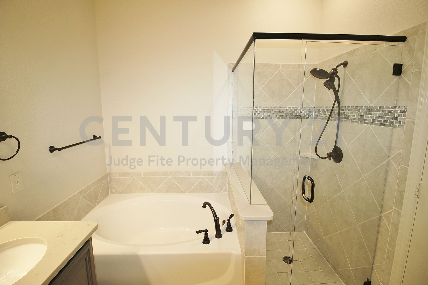 Stunning modern craftsman with designer finishes ready for move-in! Welcome to your dream home! This beautifully maintained 3/2/3 + office + bonus room perfectly blends timeless architecture with a sleek, contemporary interior. From the moment you pull into the spacious three-car garage, you’ll notice the pride of ownership and attention to detail that defines this property. The heart of the home is a sprawling open-concept living area featuring soaring vaulted ceilings and rich, dark wood-look flooring. Natural light pours in through an expansive wall of windows, highlighting a unique arched window nook with custom built-in cabinetry—the perfect spot for a home bar, coffee station, or display gallery. The chef-inspired kitchen is a showstopper, featuring: sleek, shaker-style cabinets offering ample storage, a massive prep island with breakfast bar seating, and stainless steel appliances. Your primary suite is a sanctuary of its own, boasting vaulted ceilings and a spa-like ensuite bath. Unwind in the deep soaking tub or enjoy the separate walk-in shower featuring custom tile work and oil-rubbed bronze fixtures. Additional bedrooms feature clean, neutral tones, just waiting for your personal touch. Step outside to the large fenced backyard with covered patio—perfect for relaxing, grilling, or outdoor gatherings. Located in the sought-after Northgrove neighborhood, residents enjoy a welcoming community atmosphere with convenient access to shopping, dining, schools, and major roadways. This home offers the space, versatility, and comfort you’ve been looking for—schedule your showing today and experience everything it has to offer! Owner must approve all pets.