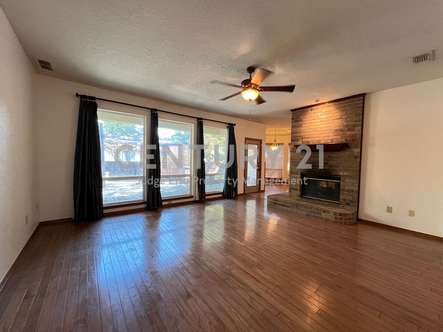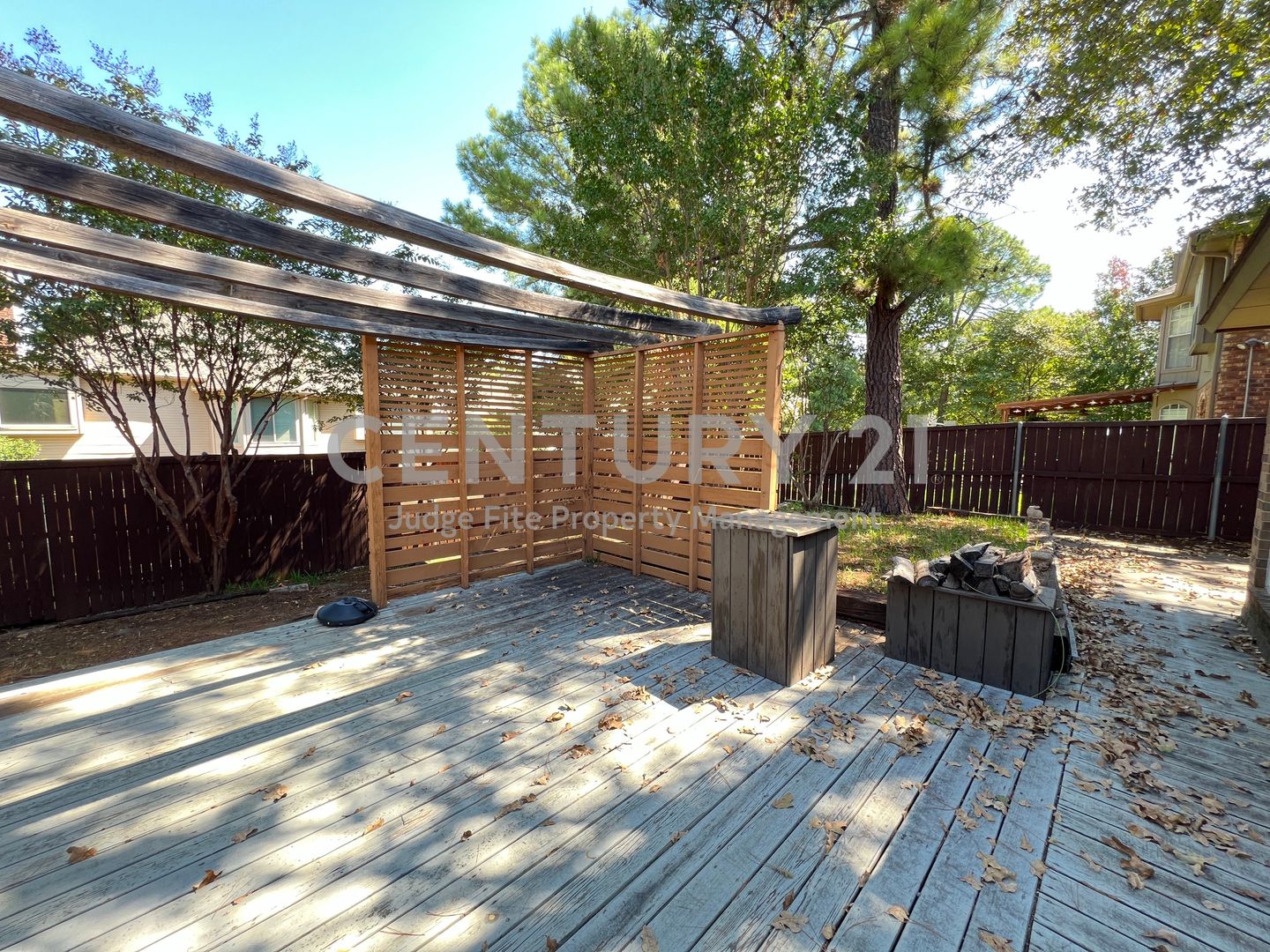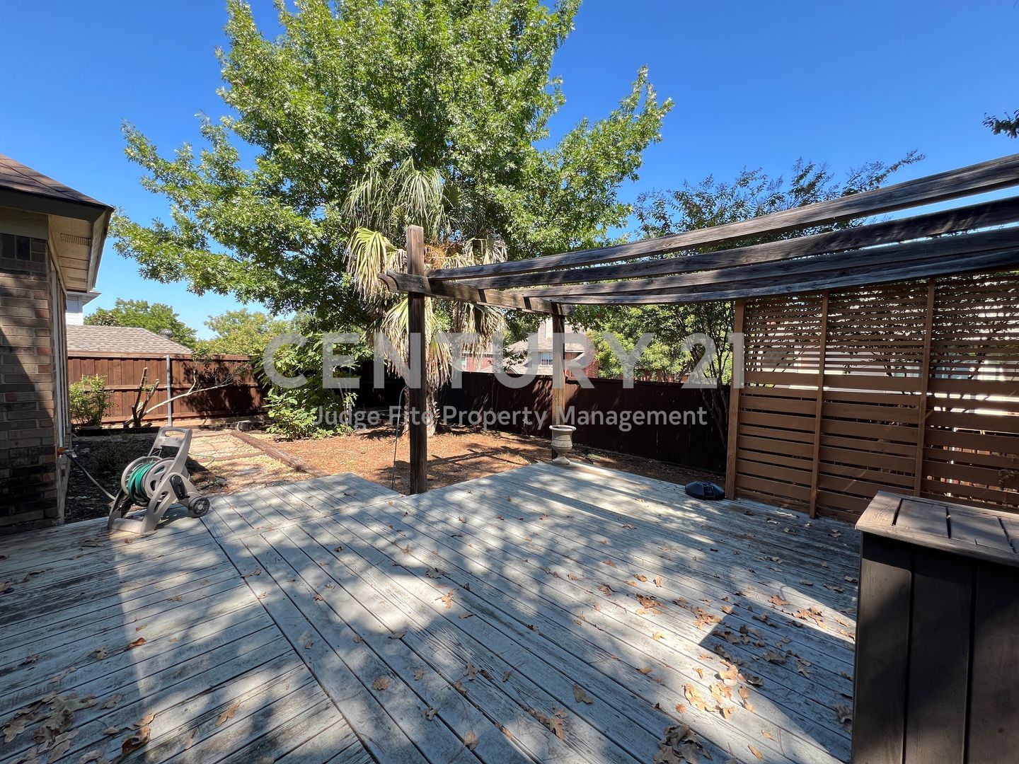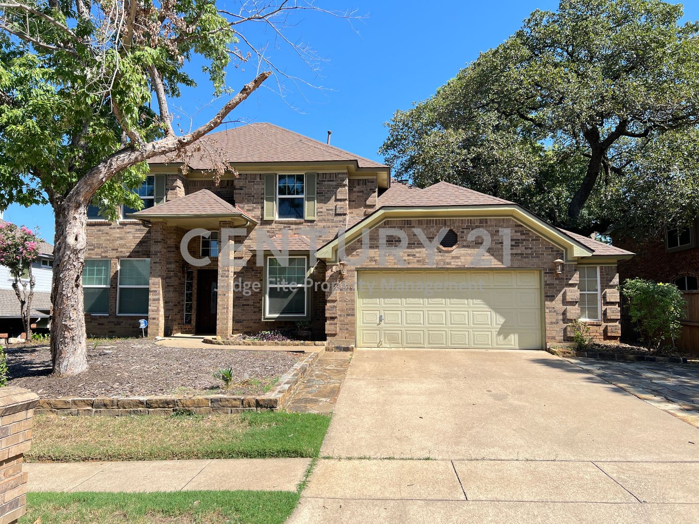 Beautiful Bud Bartley 2-story 4/3.5/2 home within walking distance to the park. Inside, you are greeted by an elegant formal dining with a large bay window that fills the space with natural light. The heart of the home is the expansive living area, highlighted by a floor-to-ceiling brick fireplace and impressive backyard views. Living area and kitchen share a see though gas fireplace. The kitchen is a chef’s delight, featuring granite countertops, ample cabinetry, and stainless steel appliances. The primary suite offers a peaceful retreat with a grand tray ceiling, dual sinks and a jetted tub in the en-suite bath. A wall of windows brings the outdoors in, offering views of the serene backyard. Upstairs, a versatile loft space with plush carpeting provides the perfect spot for a media room or playroom. The outdoor living space is equally impressive, boasting a large wooden deck with a custom pergola and privacy screening, creating an ideal environment for weekend gatherings or quiet evenings under the Texas sky. Come see everything this magnificent home has to offer! Only 1 pet allowed with owner approval.