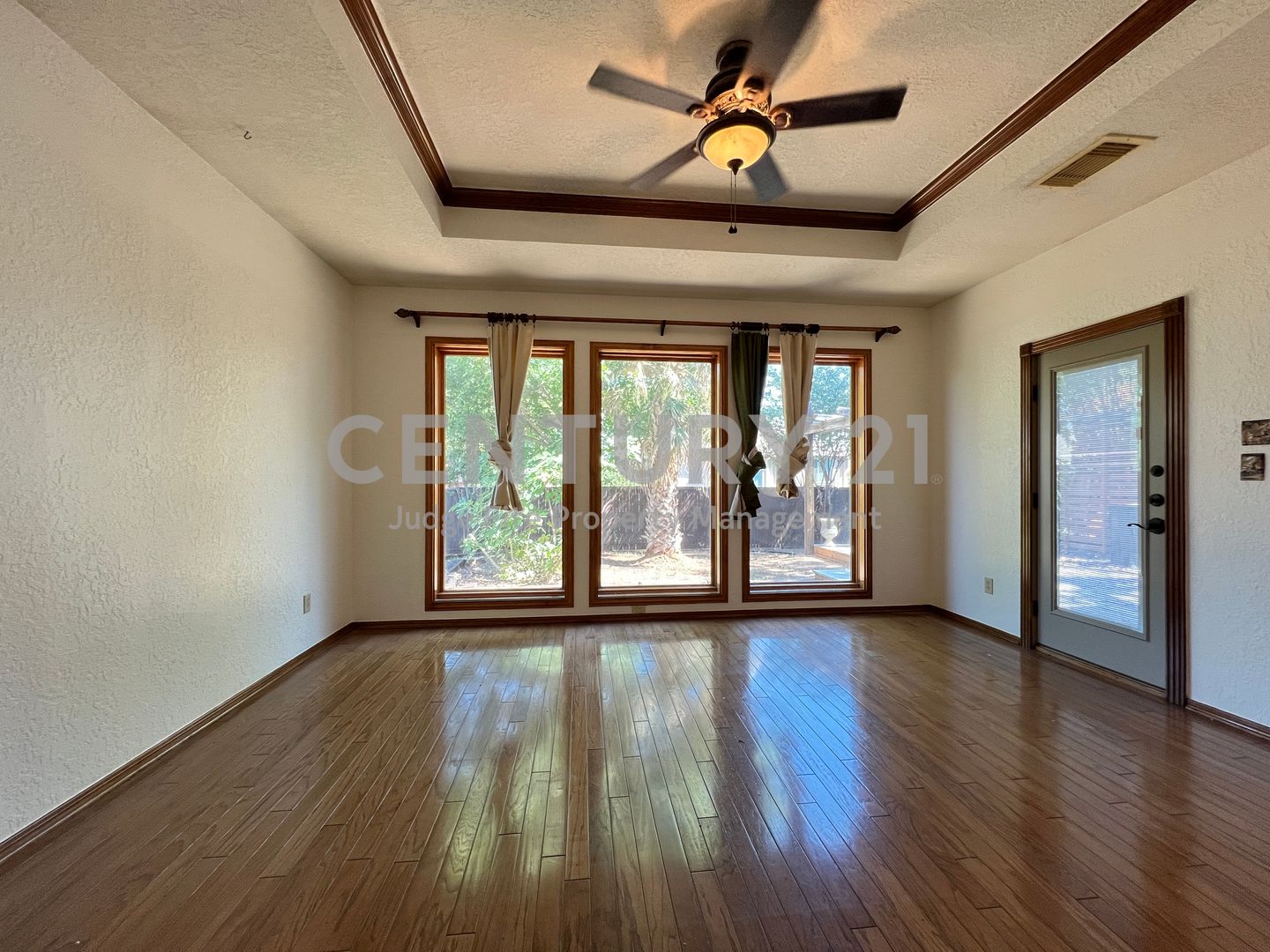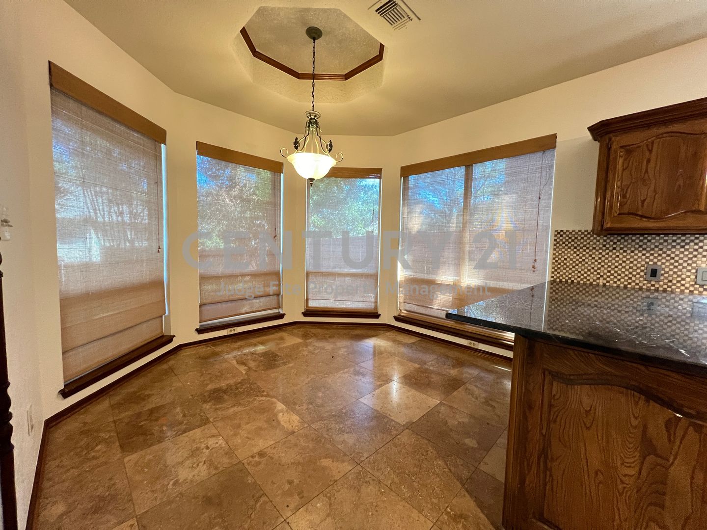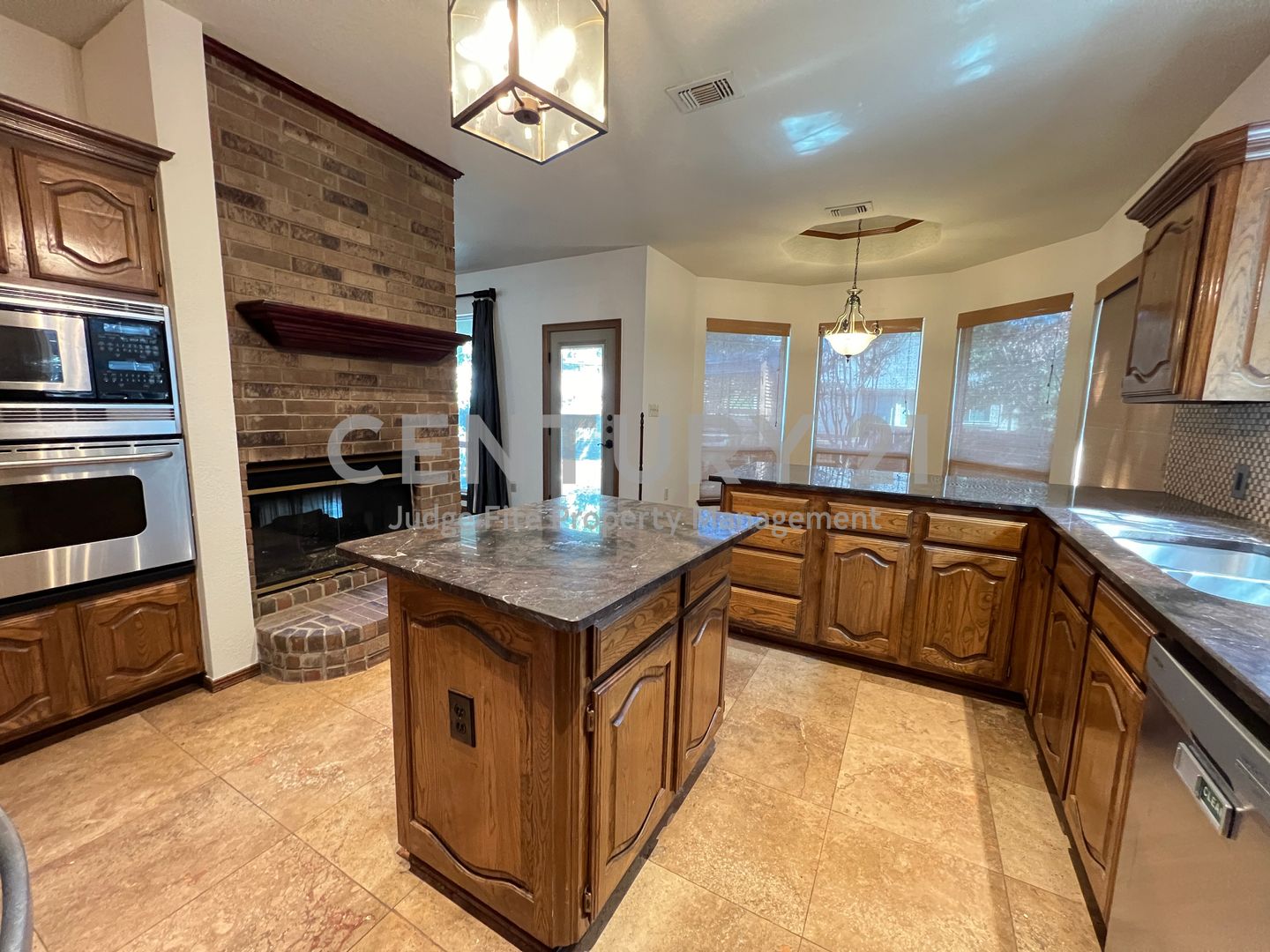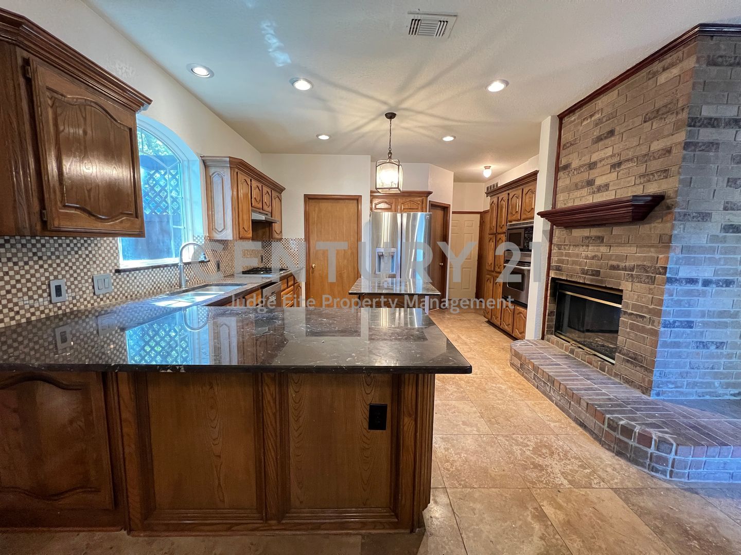 Beautiful Bud Bartley 2-story 4/3.5/2 home within walking distance to the park. Inside, you are greeted by an elegant formal dining with a large bay window that fills the space with natural light. The heart of the home is the expansive living area, highlighted by a floor-to-ceiling brick fireplace and impressive backyard views. Living area and kitchen share a see though gas fireplace. The kitchen is a chef’s delight, featuring granite countertops, ample cabinetry, and stainless steel appliances. The primary suite offers a peaceful retreat with a grand tray ceiling, dual sinks and a jetted tub in the en-suite bath. A wall of windows brings the outdoors in, offering views of the serene backyard. Upstairs, a versatile loft space with plush carpeting provides the perfect spot for a media room or playroom. The outdoor living space is equally impressive, boasting a large wooden deck with a custom pergola and privacy screening, creating an ideal environment for weekend gatherings or quiet evenings under the Texas sky. Come see everything this magnificent home has to offer! Only 1 pet allowed with owner approval.