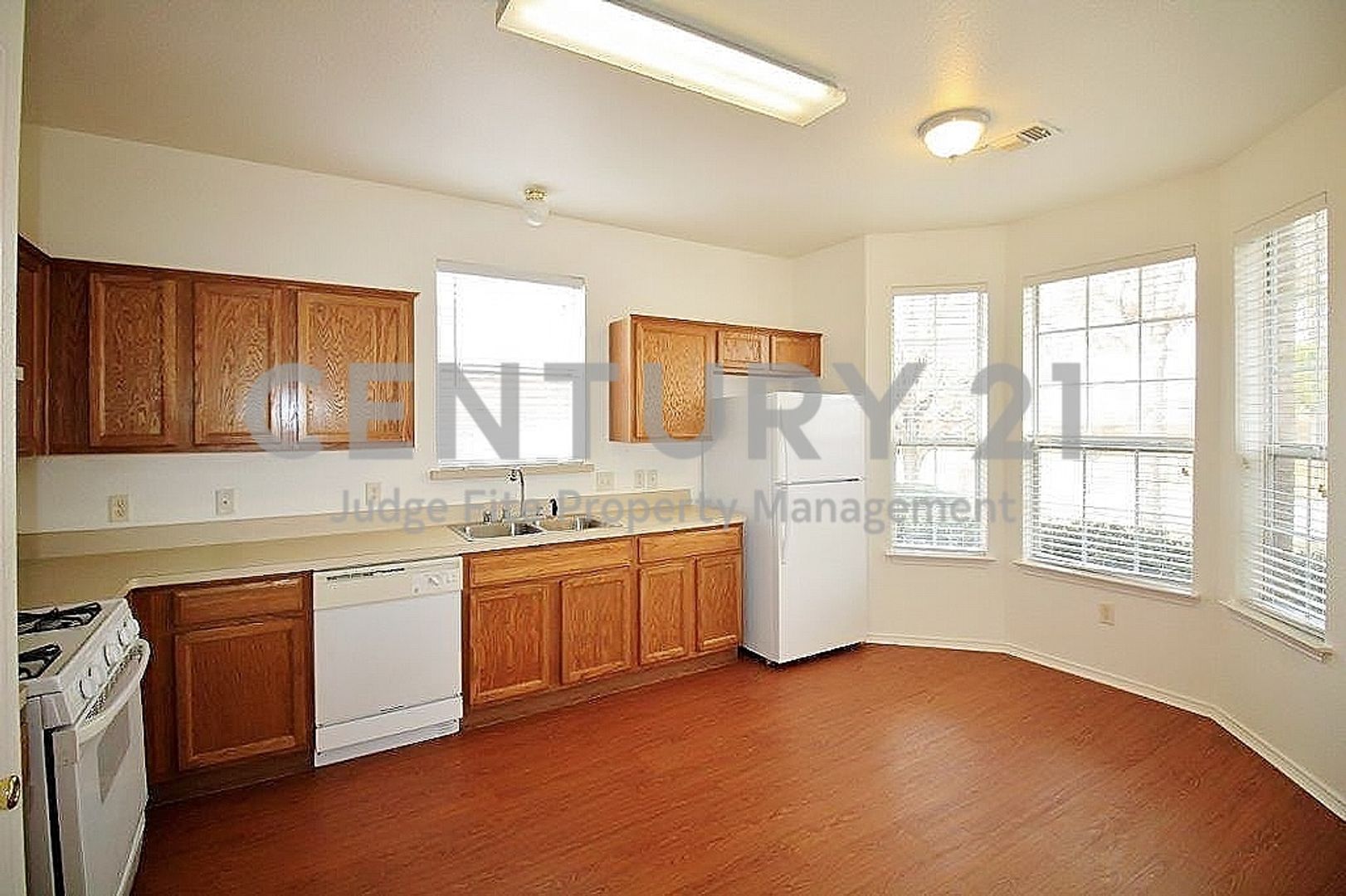 This charming 3/2/2 home offers a perfect blend of comfort and functional living. The spacious, open-concept living area features warm wood-look flooring and a cozy corner fireplace, creating the perfect centerpiece for relaxation or entertaining. Large windows throughout the home allow for plenty of natural light, complemented by elegant light fixtures and ceiling fans for year-round comfort. The bright, eat-in kitchen comes complete with a dishwasher, disposal, gas range, refrigerator, and a sunny dining nook framed by a beautiful bay window. Retreat to the primary suite, which includes an en-suite bathroom with a large soaking tub and walk-in closet. Outside, the fenced backyard provides a great space for entertaining or relaxing on the open patio. Location is key with this property, as it sits within easy walking distance to the local elementary school. Residents can also enjoy the neighborhood’s sparkling community pool, perfect for Texas summers. This well-maintained property is an exceptional find for those seeking both space and style. CALL NOW! Owner must approve all pets.