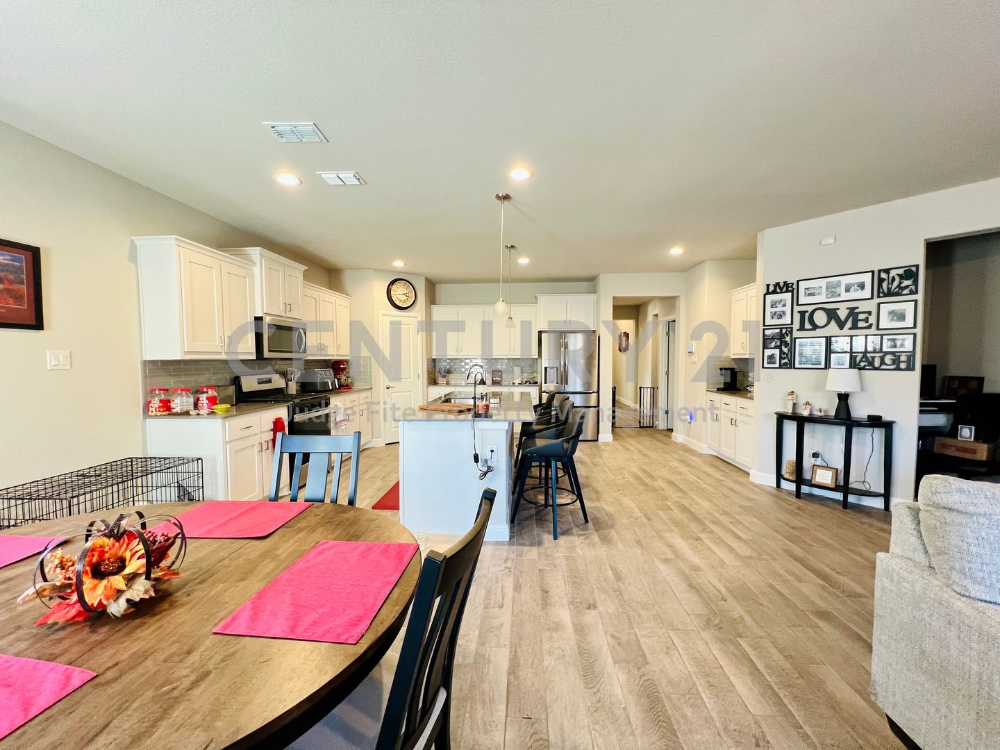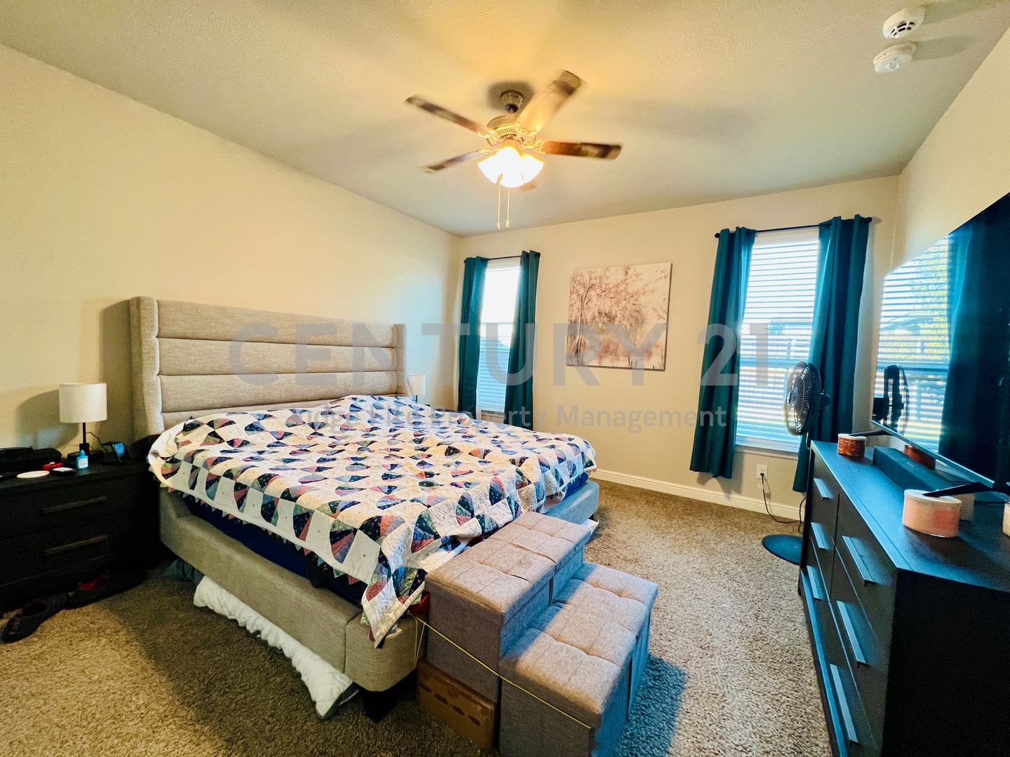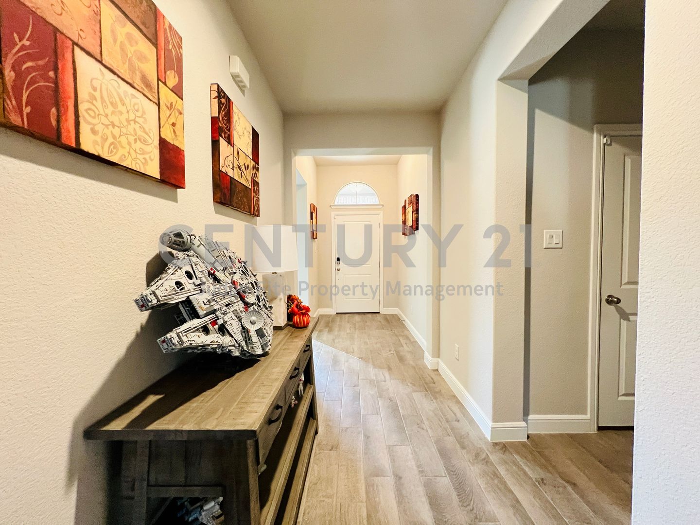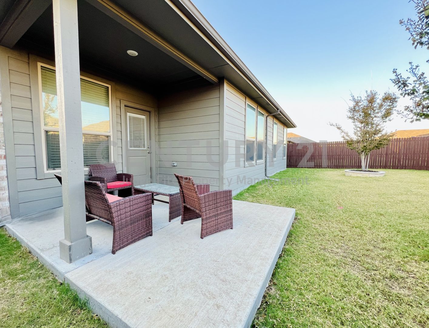Well-maintained 4-bed, 2-bath home in Northwest ISD. The open-concept living room flows seamlessly into the kitchen, which includes a gas range, built-in microwave, stainless steel appliances, abundant storage, and a refrigerator that stays with the home. A small office sits just off the living room—perfect for working from home or additional flex space. Split bedrooms with walk-in closets. The spacious primary suite offers an oversized walk-in shower and generous closet space. The laundry room provides plenty of space for a freezer or extra storage. Out back, enjoy a covered patio and a fenced yard ideal for relaxing or entertaining. Located in a community with fantastic amenities, including a park, pool, pond, and walking paths. Only two small dogs under 40lbs allowed with owner approval. No cats please. 12 month lease term only.