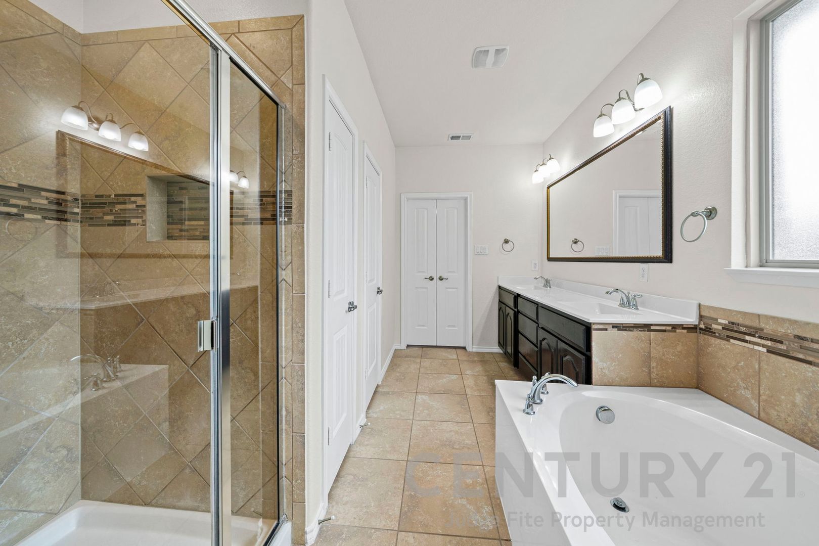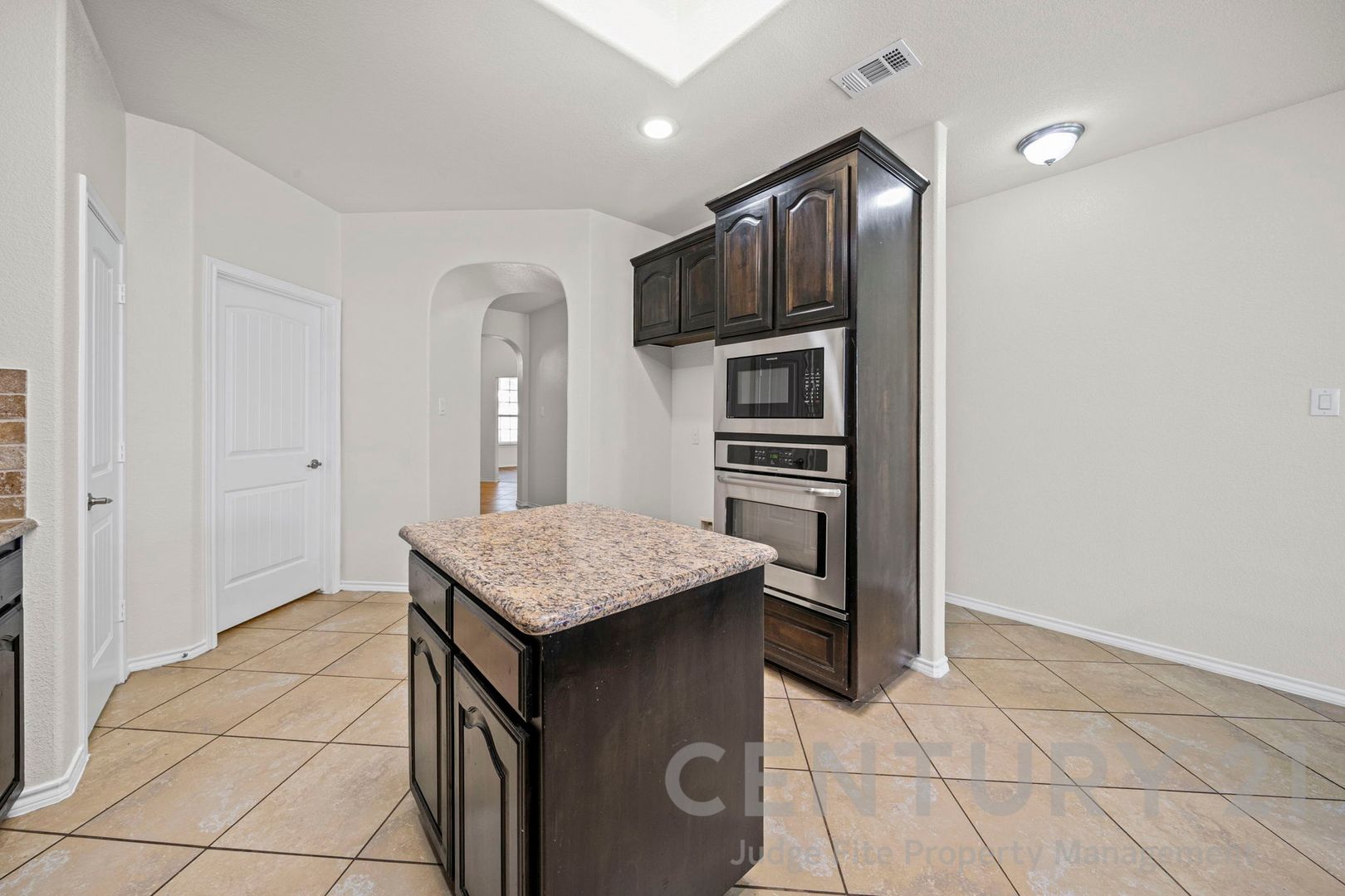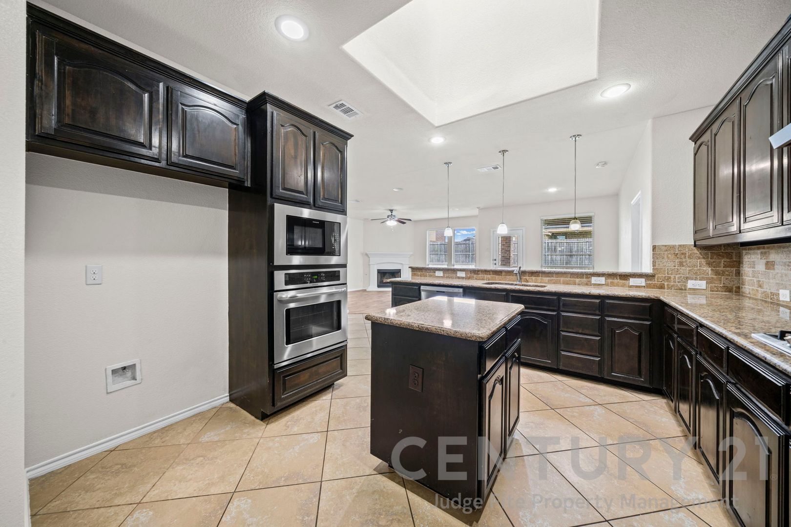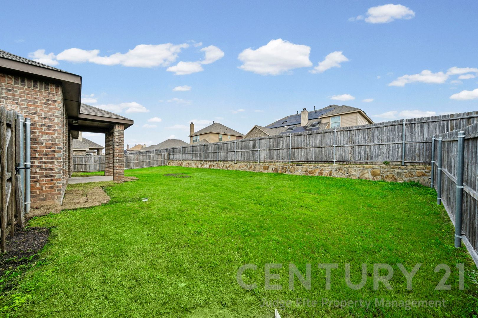 Charming, well maintained 3/2/2 in Kensington Meadows! Inside, the open-concept layout is anchored by a spacious living area featuring a WBFP. Large windows throughout the main living spaces invite an abundance of natural light. The gourmet kitchen comes complete with sleek granite countertops, stainless steel appliances, and a functional center island. Adjacent to the main living area, the primary suite serves as a private retreat, highlighted by a luxurious ensuite bathroom complete with a dual-sinks, a deep soaking tub, and a separate walk-in shower. Outside, you will find a fully fenced backyard with a covered patio that offers the ideal spot for morning coffee or weekend barbecues, while overlooking the lush green lawn. Located in an established neighborhood within walking distance of McCowan Middle School and just minutes from I-35E. This move-in-ready residence offers a perfect blend of style and functionality. Owner must approve all pets.
