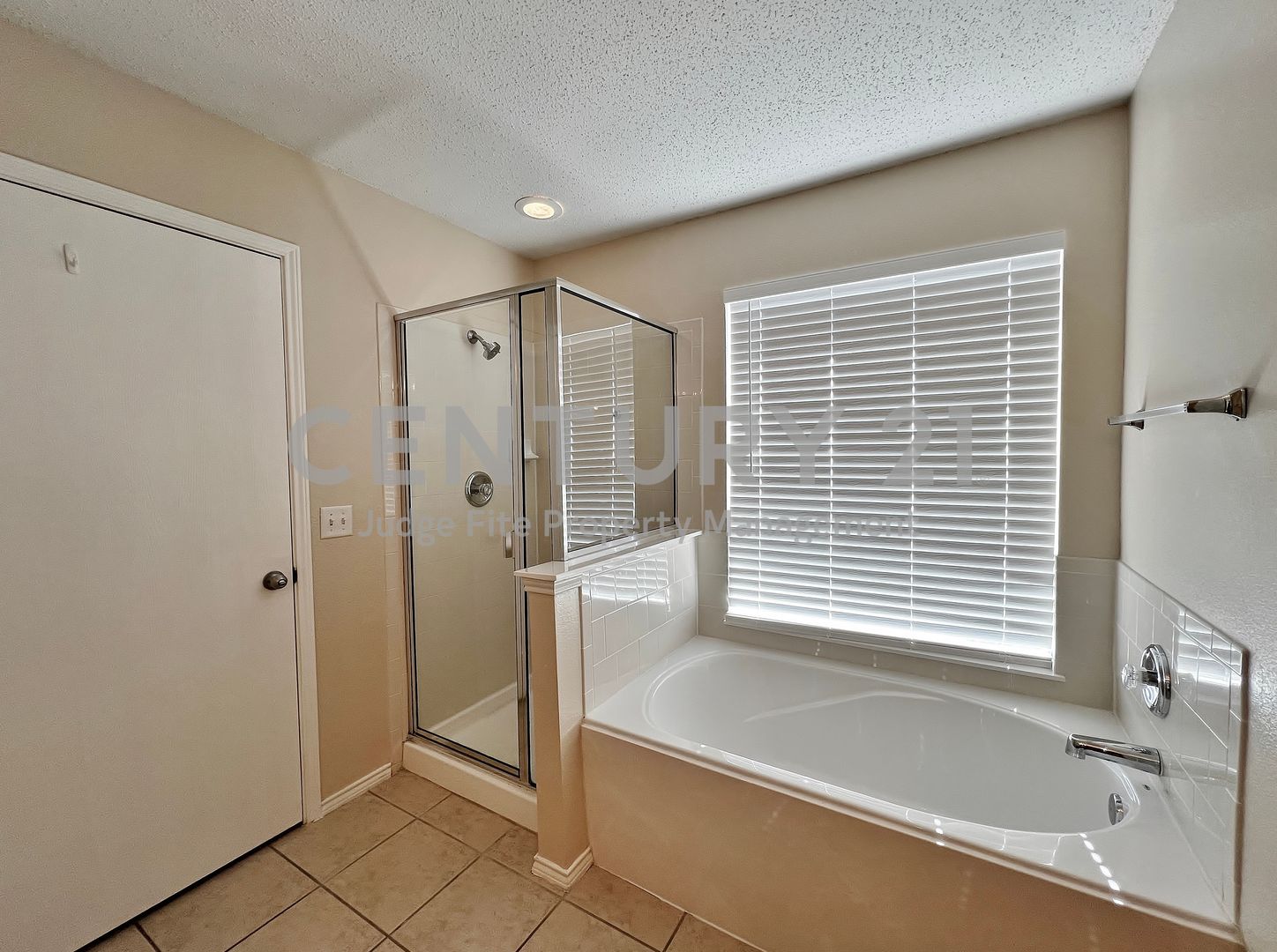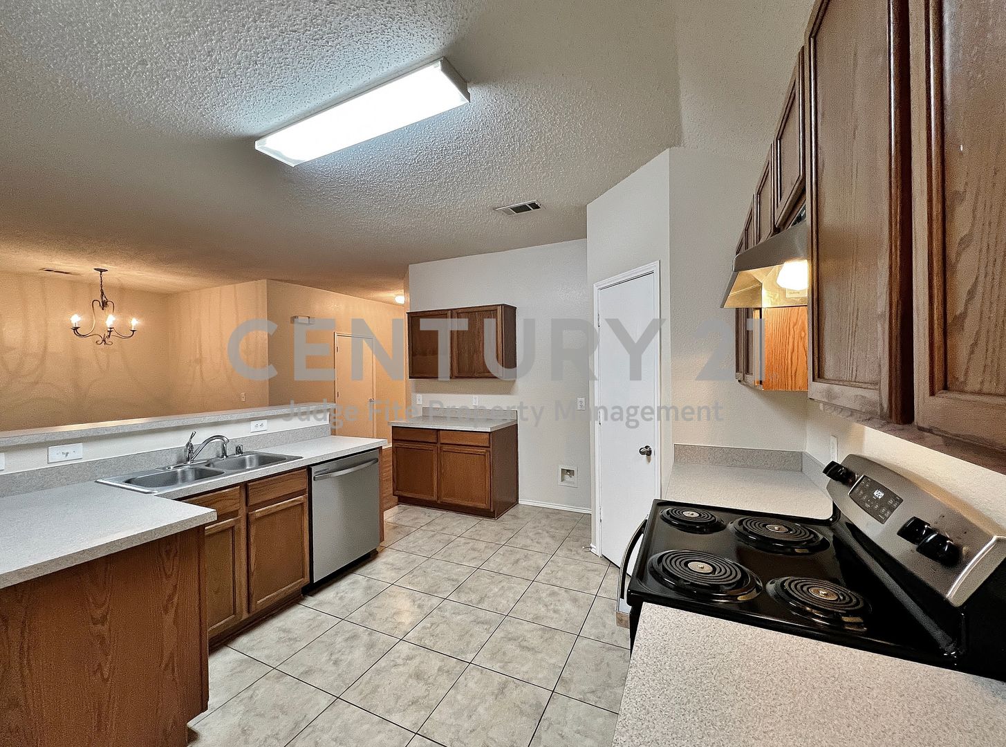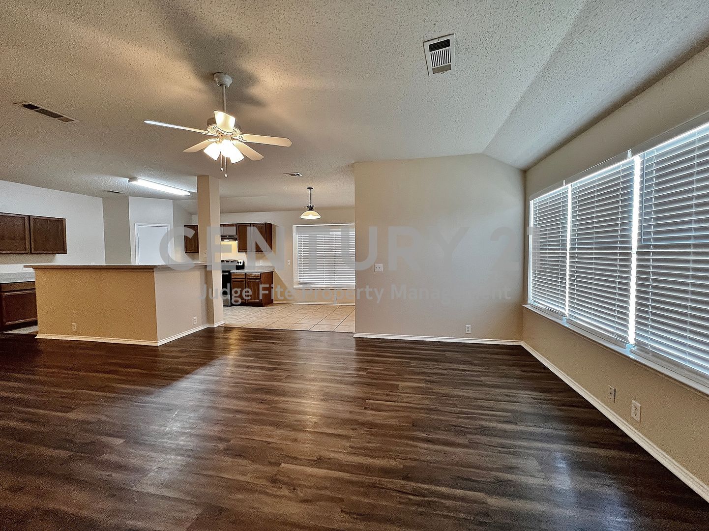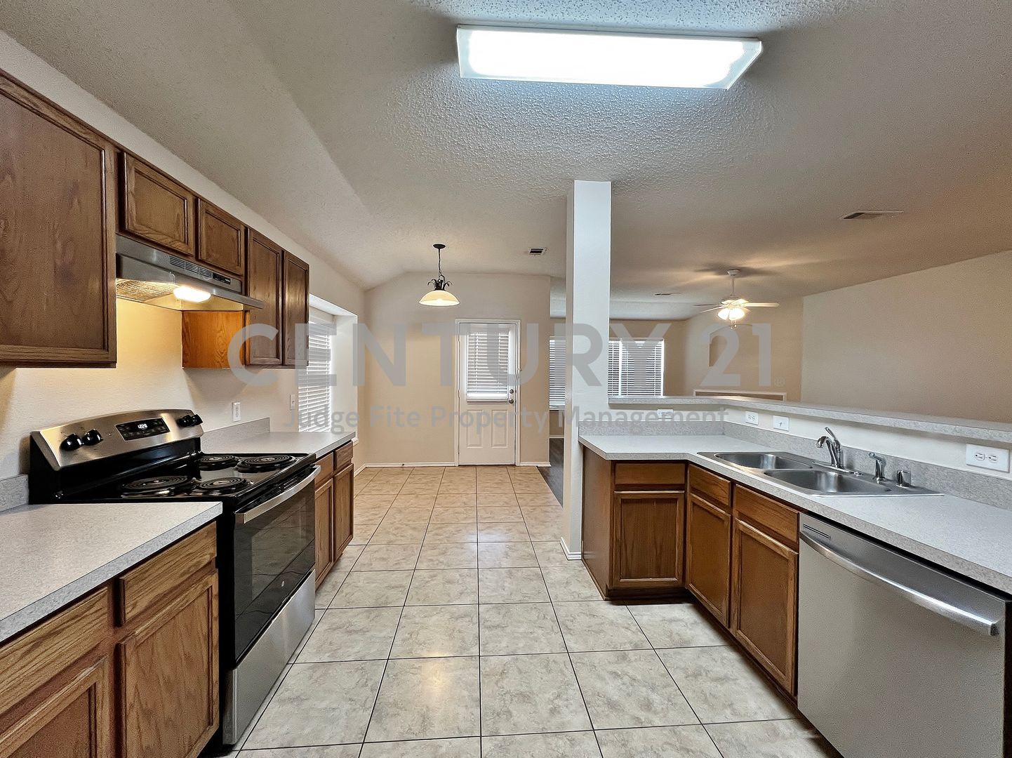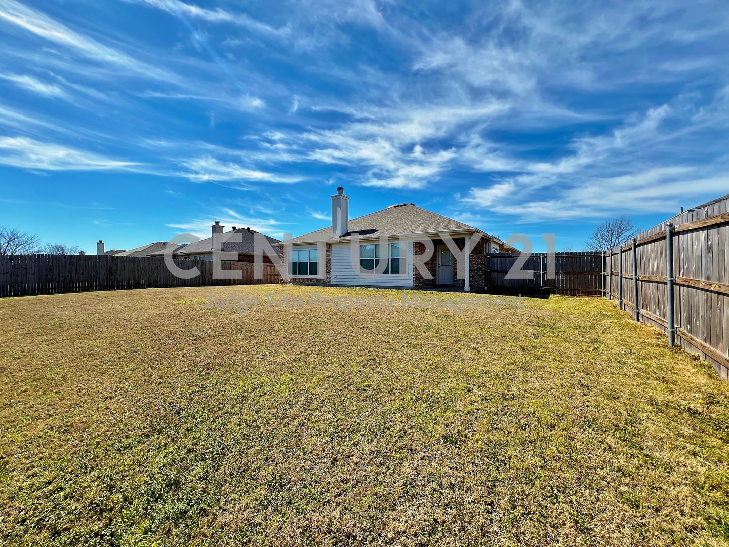 Lovely single-story 3/2/2 residence situated on a spacious lot with an expansive backyard, this home is designed for both relaxed living and effortless entertaining. Step inside to find a bright and airy open-concept floor plan featuring an expansive living area with beautiful wood-inspired flooring, anchored by a cozy fireplace with a decorative mantel. The kitchen offers ample cabinetry, sleek stainless steel appliances (including a range and dishwasher), and a functional breakfast bar that overlooks the main living space. Choose between the elegant dining nook under a classic chandelier or the sunny breakfast area with views of the backyard. Your generous primary suite features plush carpeting and a large window for natural light. Indulge in the luxury of a dual-sink vanity, a deep soaking garden tub, a separate glass-enclosed walk-in shower, and generous closet space to keep your sanctuary clutter-free. Well-appointed secondary bedrooms with ceiling fans ensure comfort for family or visitors. Fully fenced back yard with a nice covered patio provides an incredible amount of space for relaxing, play, or hosting summer BBQs. Come see this wonderful home today! Owner must approve all pets.