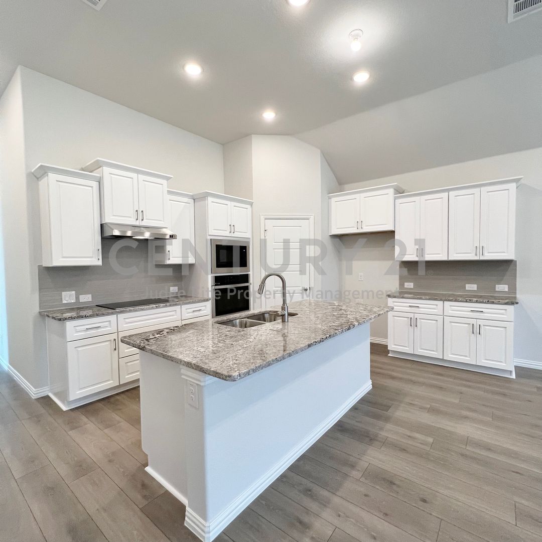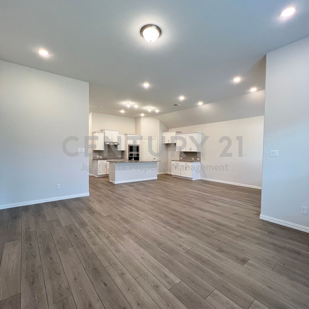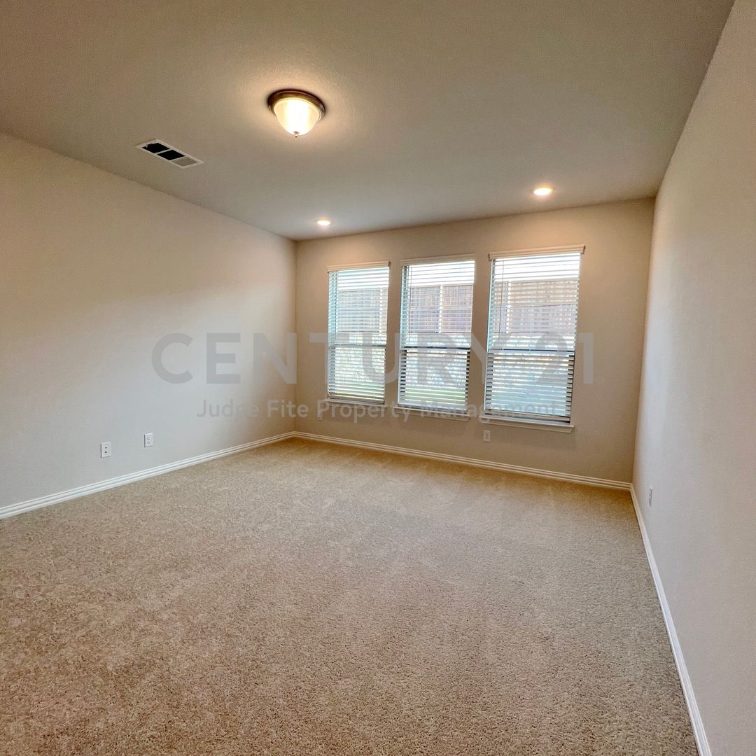Absolutely stunning 4/2/2 in Justin! This contemporary single-story home blends sophisticated design with a functional open-concept layout, perfect for both quiet evenings and vibrant entertaining. The sun-drenched living area flows seamlessly into the open kitchen and dining area. Forget cooking alone. This massive island is built for prep and entertaining, anchoring a chef’s kitchen with sleek white shaker cabinets and stainless steel appliances. Your primary suite is a true retreat. From the plush, carpet to the spa-inspired bath—it's pure relaxation. Well-sized secondary bedrooms offer flexible space for a home office or guest room, complete with large closets and easy access to a full, modern second bath. Unwind on your covered back patio. It's the perfect, low-maintenance spot for a morning coffee. Don't miss out on this modern gem! Smart home features. Stovetop is convection only, must use appropriate pots and pans. Owner must approve all pets.