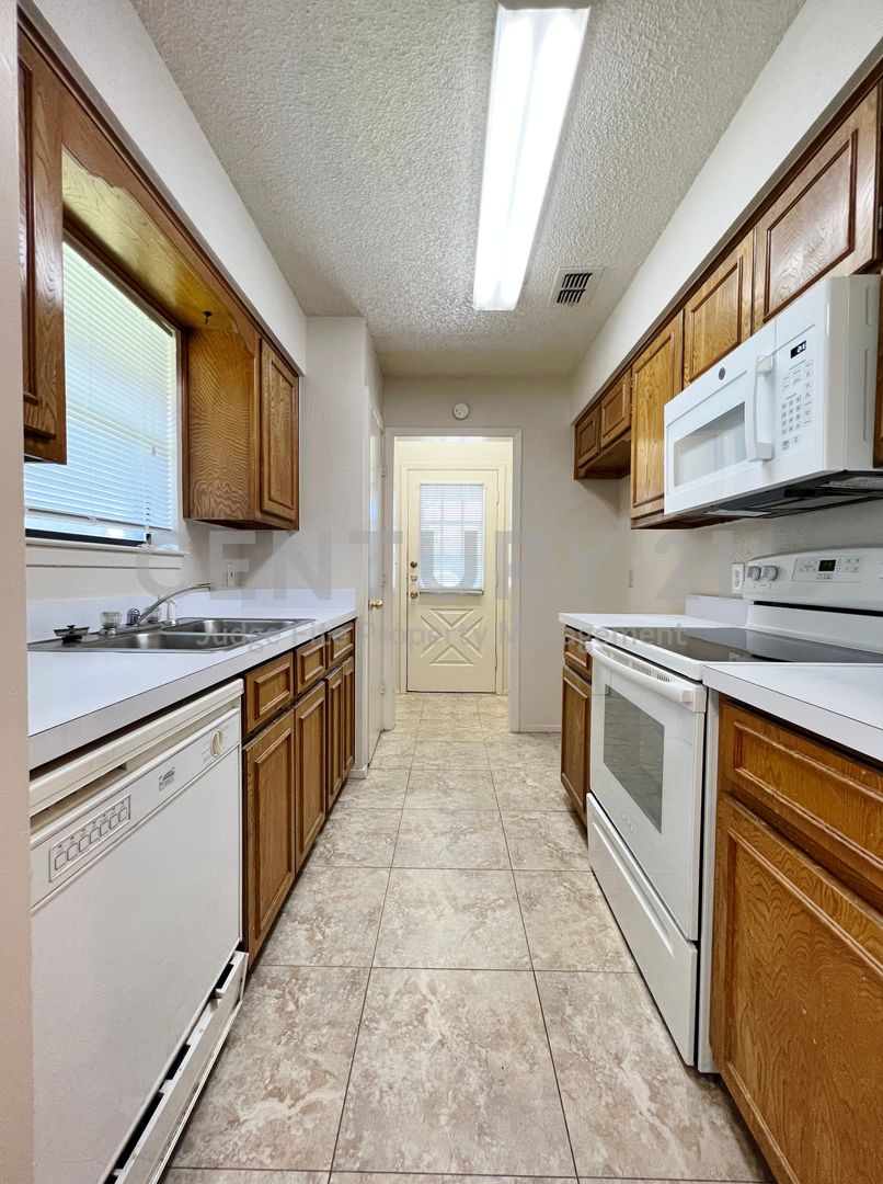 Welcome home to this inviting 2-bedroom, 2-bathroom duplex that perfectly blends comfort and convenience. Nestled in an established Weatherford neighborhood, this well-maintained duplex features a functional layout designed for easy living. Enjoy a bright and airy living area featuring durable tile flooring and a ceiling fan for year-round comfort. The galley-style kitchen is equipped with ample cabinetry, plenty of counter space for meal prep, and appliances including a dishwasher and stove. Both bedrooms are generously sized with their own dedicated bathrooms and walk-in closets, making this an ideal setup for roommates or guests. You’ll find stylish, wood-look plank flooring throughout—no carpet to worry about! The property features a shaded front yard with mature trees, a covered back patio, and a dedicated concrete parking pad for easy access. Ideally situated in Weatherford, you are just minutes away from local shopping, dining, and easy highway access. Come check it out today! Only 1 small pet under 20lbs allowed with owner approval. $50.00 monthly pet rent required.