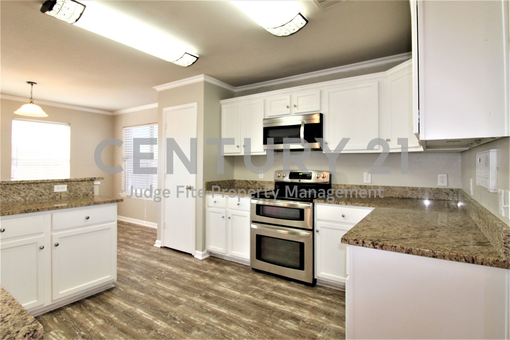 This fabulous amenity packed 2-story 4/2.5/2 is situated on a cul-de-sac in a community with a sparkling pool, club house, private lakes and near major highways for easy commutes. Abundance of indoor space with split bedrooms, 2 living and 2 dining areas. Open floor plan is a plus and features beautiful kitchen open to the living and breakfast areas. Fireplace in the downstairs living area. Updated kitchen with granite countertops, stainless steel appliances and plenty of cabinet space. Spacious primary suite is on the main floor while secondary bedrooms are upstairs along with additional living room. Huge fenced backyard with storage shed. Come see! Only pets under 50lbs allowed with owner approval. 12 month lease term only.
