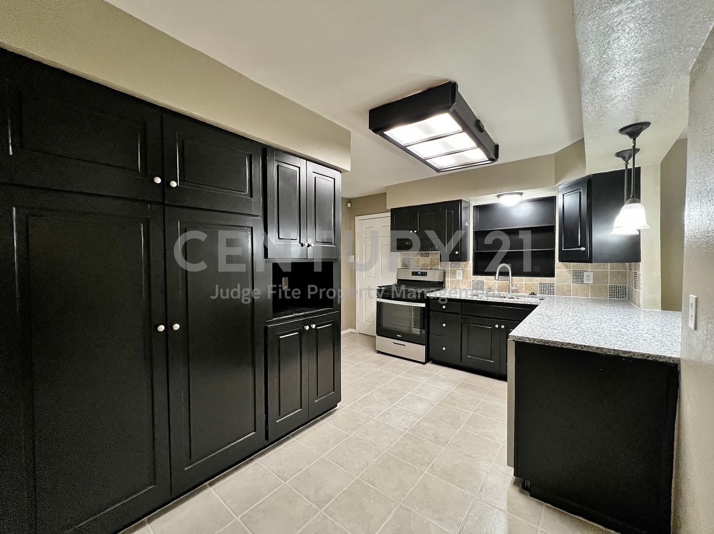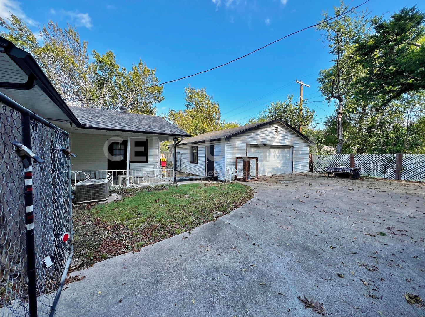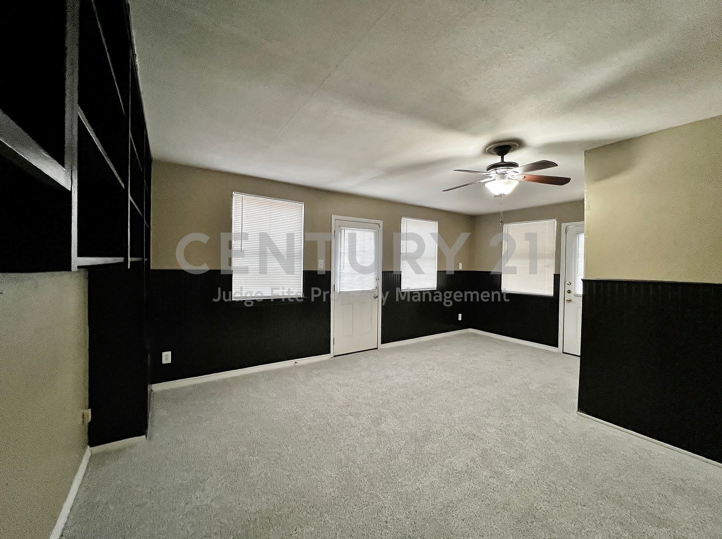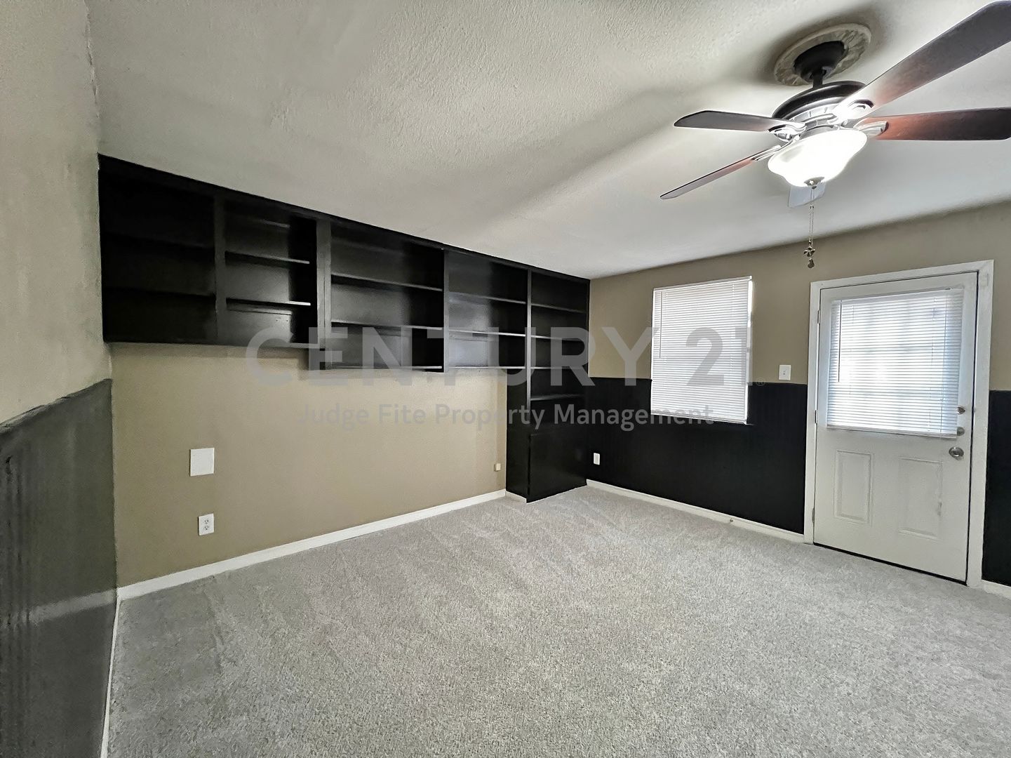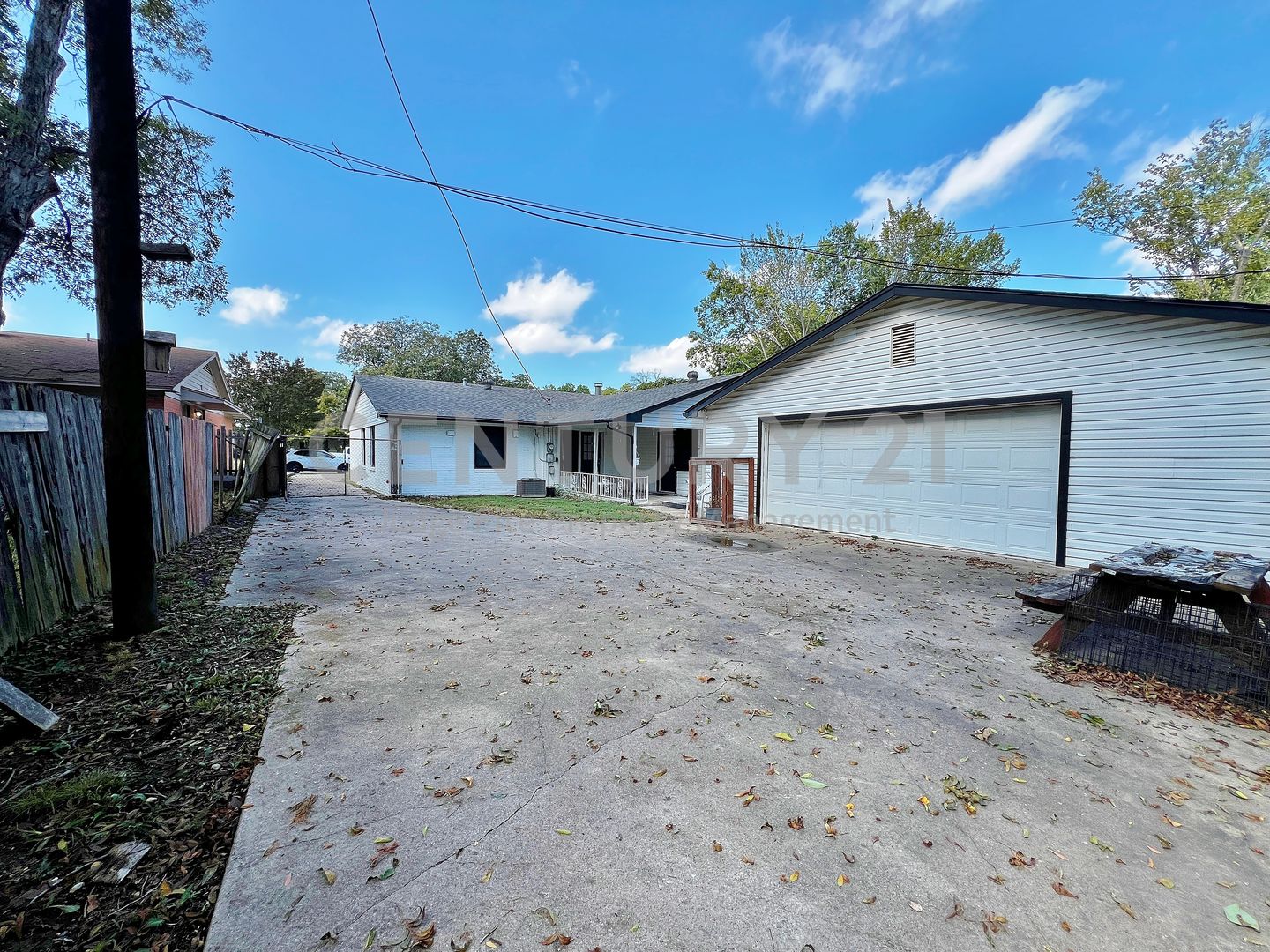 Welcome to this delightful 3/2/2 home that perfectly blends classic charm with modern amenities. From the quaint, freshly painted exterior to the beautifully updated interior, this property is ready for move-in! Enjoy flexibility with two separate living spaces. The main living area features cozy carpeting and a striking brick fireplace flanked by built-in shelves. The spacious second living area offers built-in shelving—perfect for an office, media center, or playroom. Stylish kitchen offers an abundance of cabinet space, great for all your kitchen gadgets, striking granite countertops, and stainless steel appliances, including a gas range and dishwasher. Located off the kitchen, the dining space features durable tile flooring, built-ins, and direct access to the backyard. Split bedroom design with a nice ensuite in the primary. Step outside to the fully fenced and gated backyard with covered patio area, a HUGE detached garage with workshop and additional parking space. This home offers a fantastic opportunity with its blend of comfortable living spaces, thoughtful updates, and functional outdoor areas. Owner must approve all pets.