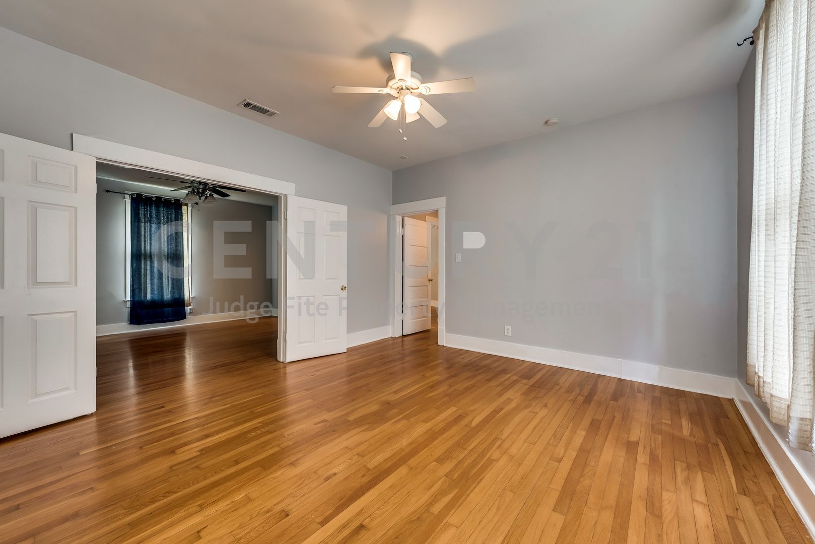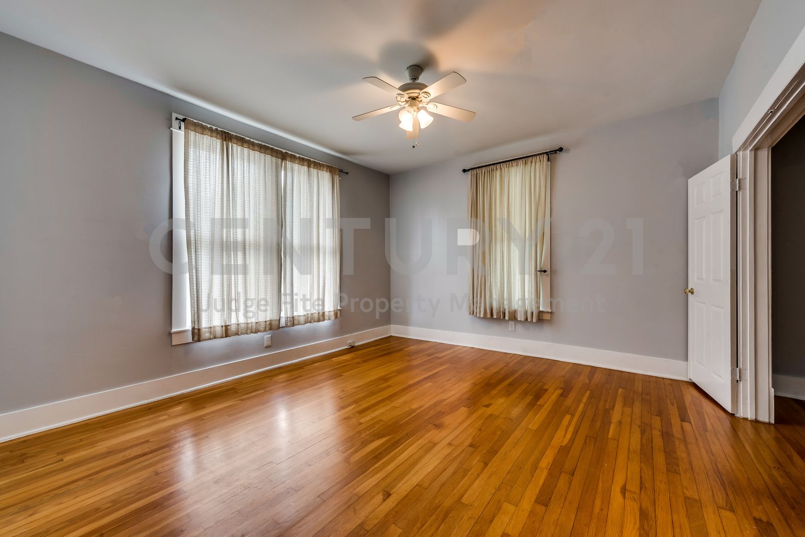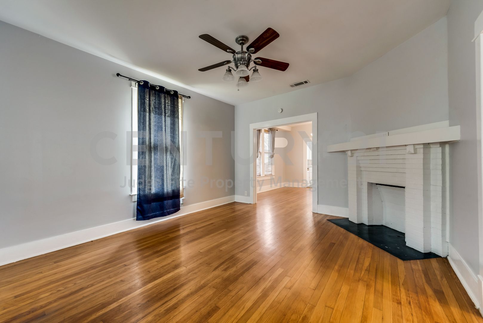 This charming 2/2 craftsman-style bungalow blends classic architectural details with modern updates to create a bright, inviting home. From the moment you step onto the expansive covered front porch, you’ll feel the character and warmth this property has to offer. Gleaming original hardwood floors run throughout the main living areas, while high ceilings and wide entryways create a seamless flow between the dining room and living spaces, ideal for entertaining. A functional and stylish kitchen equipped with butcher block countertops, modern stainless steel appliances, and ample cabinetry. The mosaic tile backsplash and track lighting add a sophisticated touch. The second living area would make a great home office, den, or nursery. Your spacious primary suite features a large closet. Large windows flood the home with natural light, while ceiling fans in the bedrooms and living areas ensure year-round comfort. The neutral gray palette provides a clean slate for any decor style. Outside you will find a private wooden deck—perfect for morning coffee or summer BBQs. The fenced backyard offers plenty of room for entertaining or unwinding, featuring a mix of paved areas and green space. Situated in an established neighborhood with easy access to local amenities. Only 1 pet allowed with owner approval. Fireplace is decorative only ¬t for tenant use.