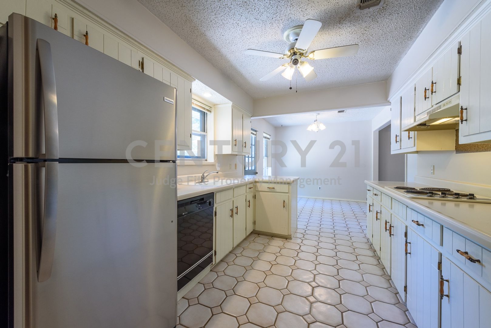 Great 3/2/2 in Irving. Step inside to find a seamless flow with durable laminate wood flooring throughout the main living areas and bedrooms, accented by easy-to-maintain ceramic tile in the kitchen and bathrooms. The oversized living room is the heart of the home, featuring a cozy brick gas-starter fireplace and a built-in dry bar—ideal for entertaining guests or relaxing on quiet evenings. The functional kitchen comes fully equipped with a dishwasher, disposal, electric cooktop, separate electric oven, freestanding microwave, and a refrigerator. Enjoy a smart split-bedroom floorplan for added privacy. The primary suite serves as a true retreat, complete with dual sinks and ample space. Fully fenced backyard offers a relaxing space for pets, play, or weekend BBQs. Schedule your showing today! Owner must approve all pets. Tenants will be responsible to unclog or snake drains.