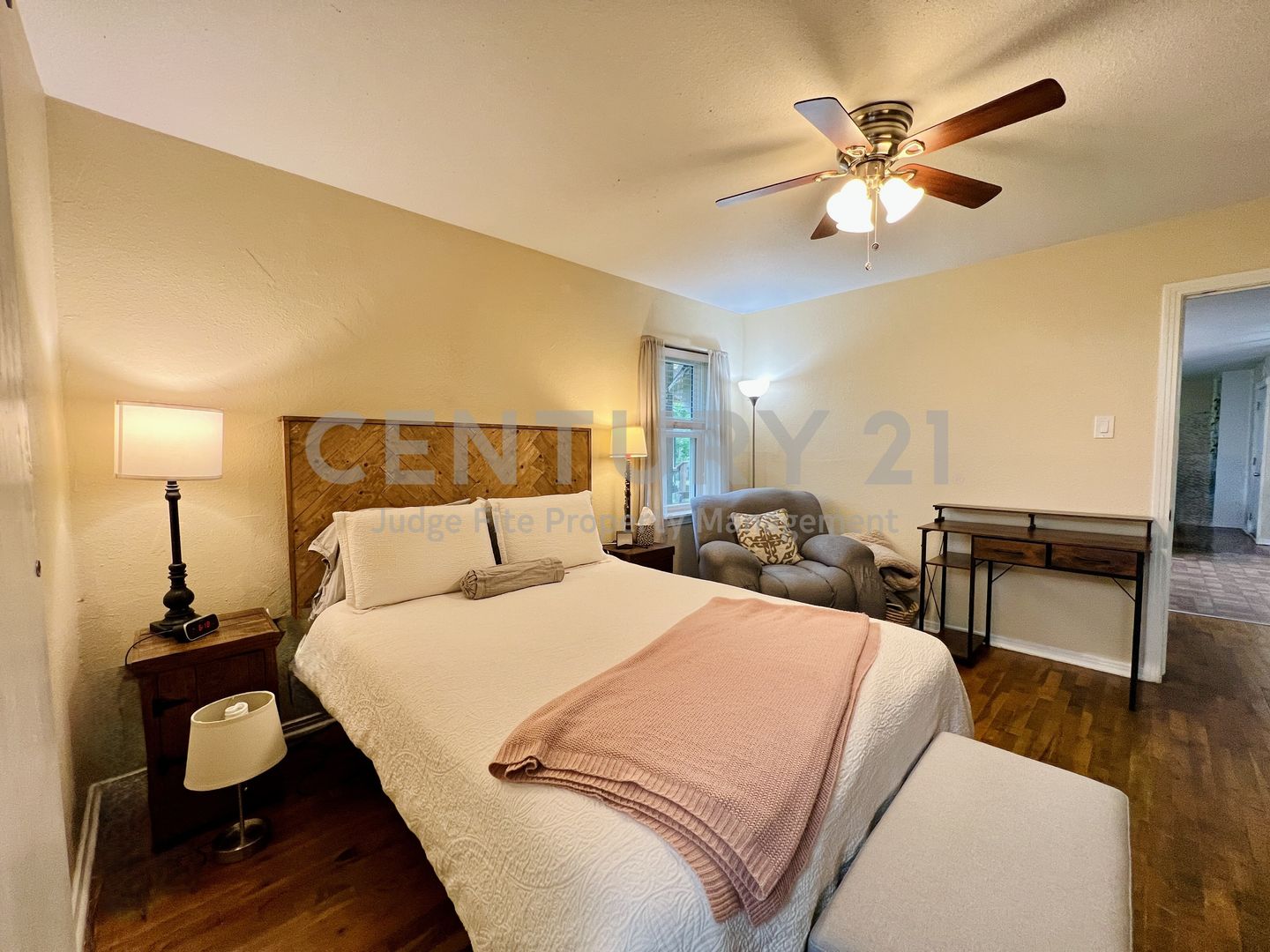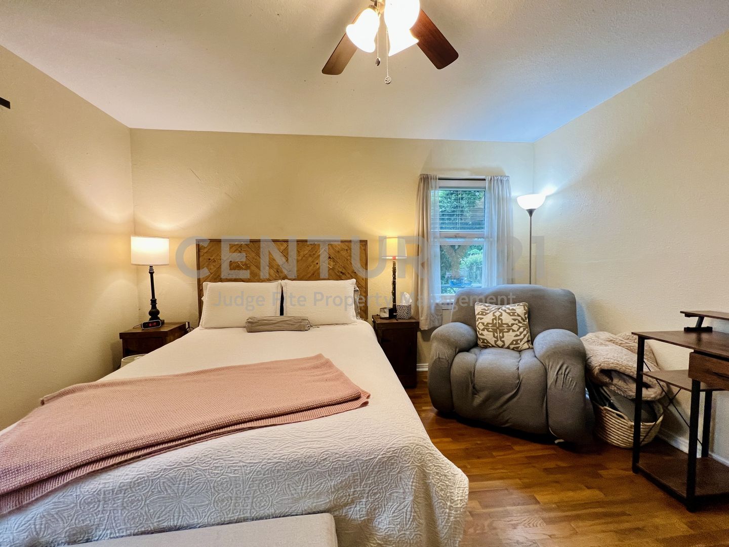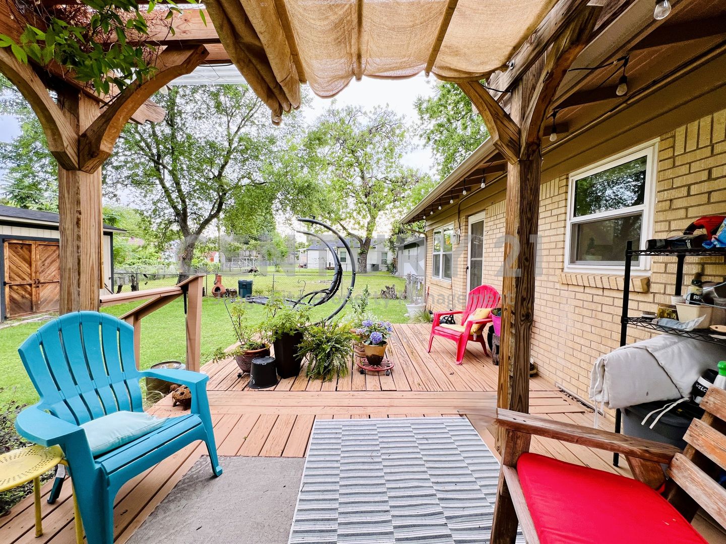 Well-maintained 2-bedroom, 2-bath home featuring a thoughtful layout and inviting spaces throughout. The primary bedroom includes a beautifully added ensuite bath with an oversized shower and skylights that bring in great natural light. The kitchen offers a gas range, refrigerator, and views of the spacious backyard, along with a cozy breakfast area. Between the kitchen and living room, you’ll find ample built-in storage—perfect for books, décor, or keepsakes. Enjoy real hardwood floors throughout the home. The backyard is generously sized and ideal for entertaining, complete with a deck, pergola, and a convenient storage shed. Additional features include a 1-car garage, a separately built 1-car carport, and a laundry area located in the garage. Home is walking distance to parks and Nimitz High School. Only small pets allowed with owner approval.