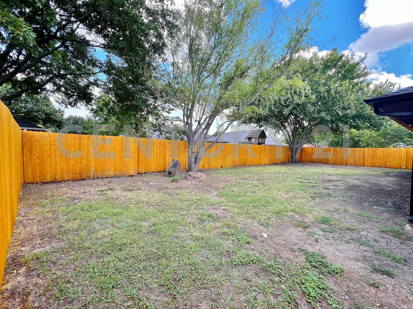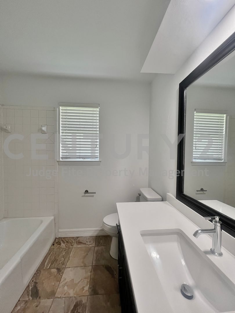 Stunningly updated single-family home with modern finishes! Welcome to your beautifully remodeled 3/2/2 in Mansfield! This single-story brick residence offers a perfect blend of classic charm and modern style, making it the ideal place for comfortable living. Step inside to an inviting and brightly lit space featuring gorgeous hardwood-style flooring that runs throughout the main living areas and bedrooms. The spacious living room is the heart of the home, boasting tall ceilings, recessed lighting, and a cozy brick fireplace. Crisp and clean kitchen showcases sleek black, shaker-style cabinetry that provides abundant storage. It comes fully equipped with stainless steel appliances and quartz countertops. Well-lit with natural light, the adjacent dining area makes entertaining a breeze. Generously sized bedrooms, all with ceiling fans. The primary bathroom has been completely modernized, offering a luxurious setup with a double-sink vanity, a large, custom-framed mirror, and a separate glass-enclosed shower. The second full bath continues the stylish theme with a modern vanity and clean white tile work. Out back, you'll find a covered patio that overlooks the sizable backyard, which is fully fenced—creating an excellent space for outdoor activities. The surrounding mature trees offer lovely shade and a peaceful setting. All nestled on a cul-de-sac, ready for immediate occupancy! Owner must approve all pets.