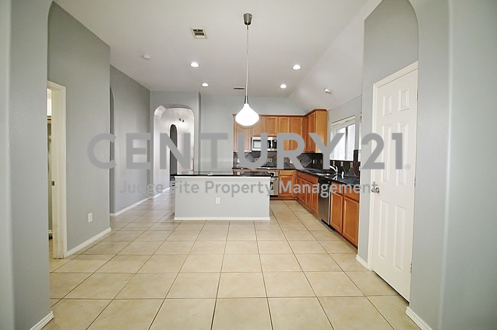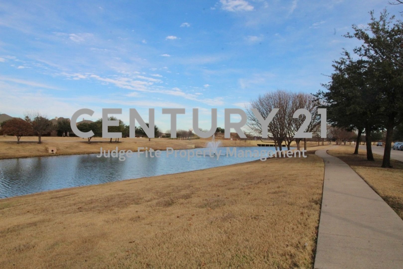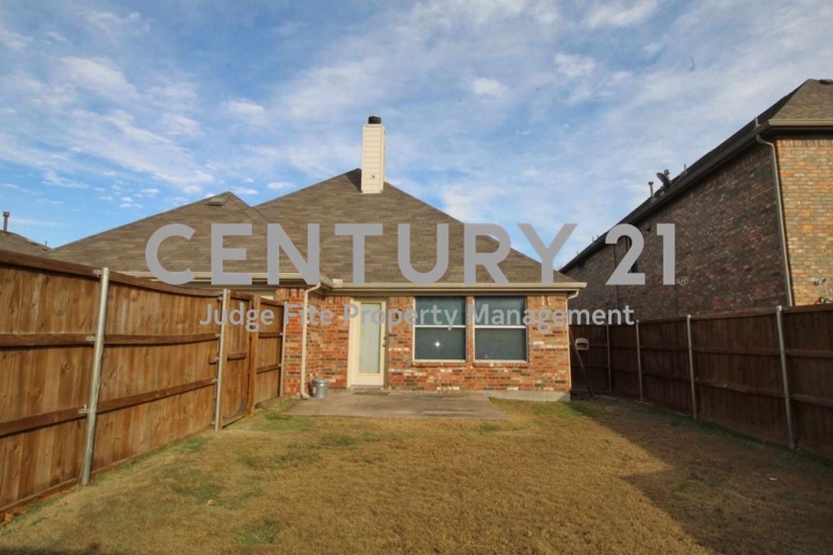Fabulous 3/2/2 in Frisco! Updated fixtures, archways and neutral colors throughout. Front entry leads to your spacious home office and continues into the formal dining area. Living area features a gas starting fireplace. Beautiful island kitchen with custom backsplash and stainless steel appliances. Good sized bedrooms. Primary suite includes a garden tub with separate shower and a walk-in closet. Rear entry garage, full size utility area and fenced backyard with open patio. Just a short walk to the community pool. Other community amenities included a private lake with walking trails, a park and a playground. Come see! Only 1 pet allowed with owner approval.