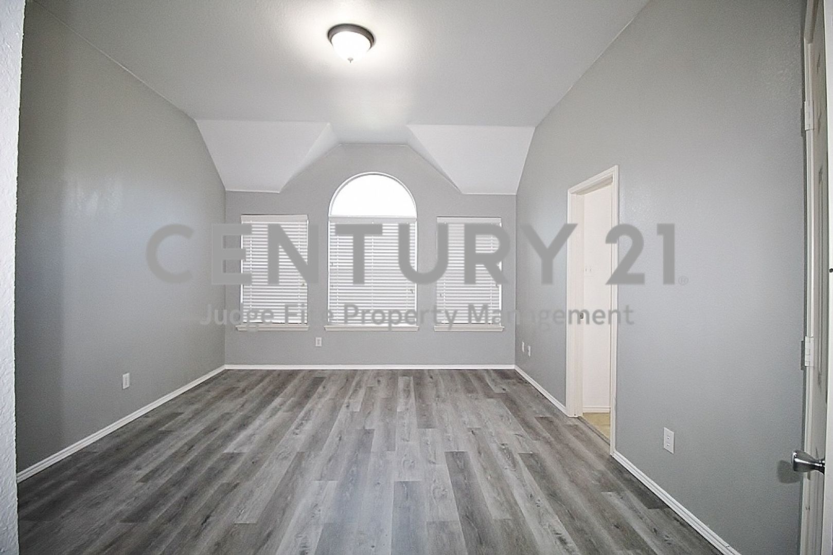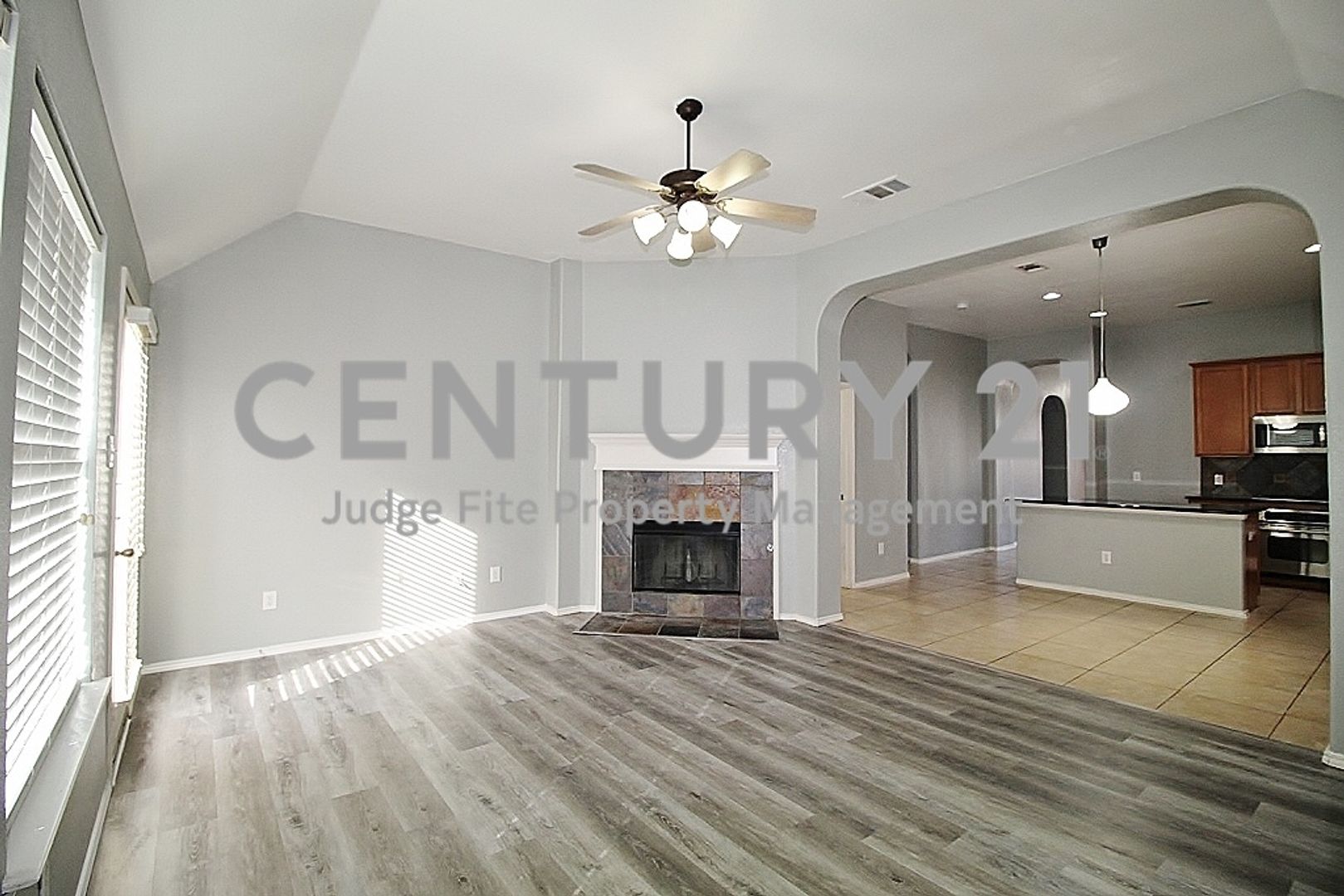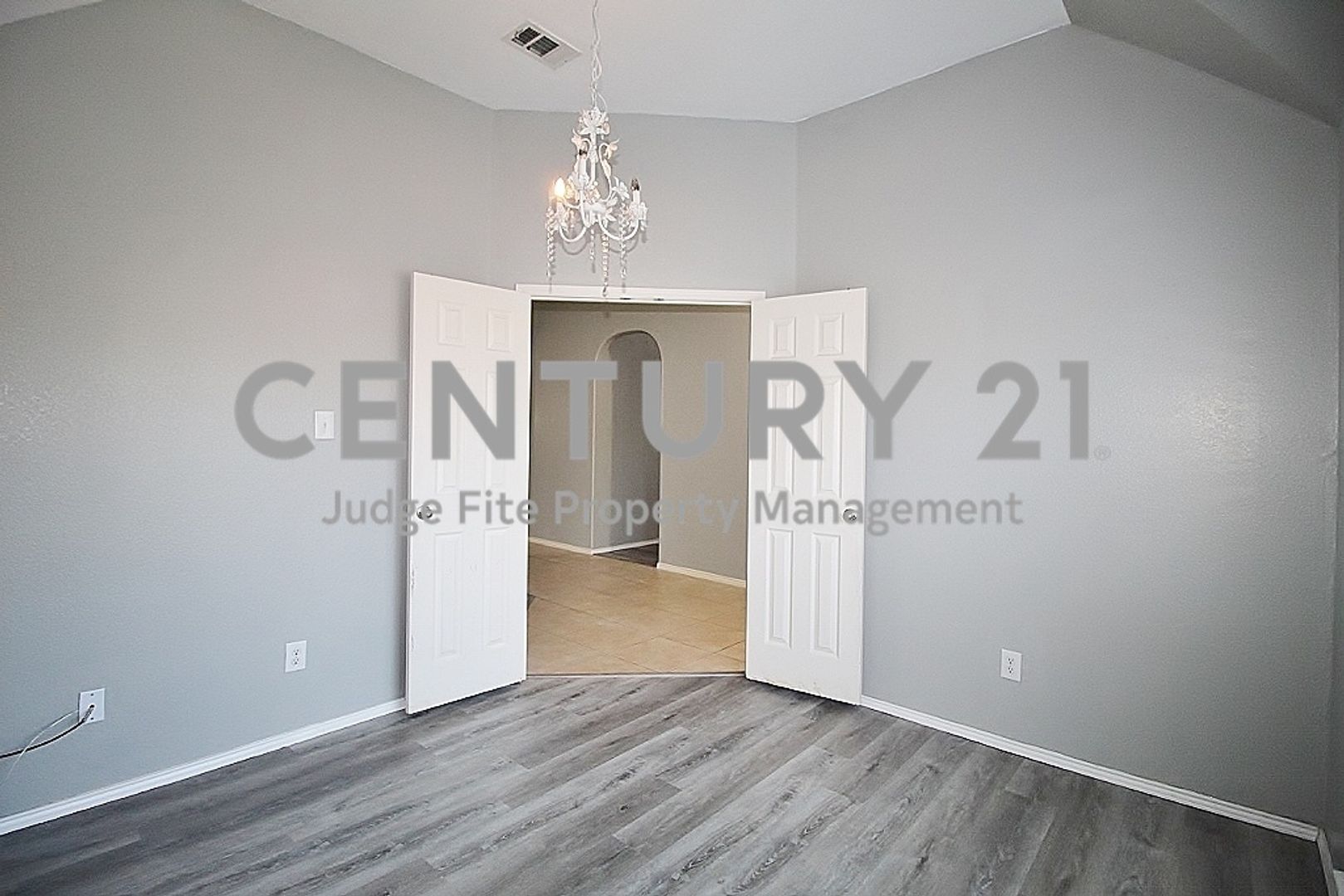 Fabulous 3/2/2 in Frisco! Updated fixtures, archways and neutral colors throughout. Front entry leads to your spacious home office and continues into the formal dining area. Living area features a gas starting fireplace. Beautiful island kitchen with custom backsplash and stainless steel appliances. Good sized bedrooms. Primary suite includes a garden tub with separate shower and a walk-in closet. Rear entry garage, full size utility area and fenced backyard with open patio. Just a short walk to the community pool. Other community amenities included a private lake with walking trails, a park and a playground. Come see! Only 1 pet allowed with owner approval.