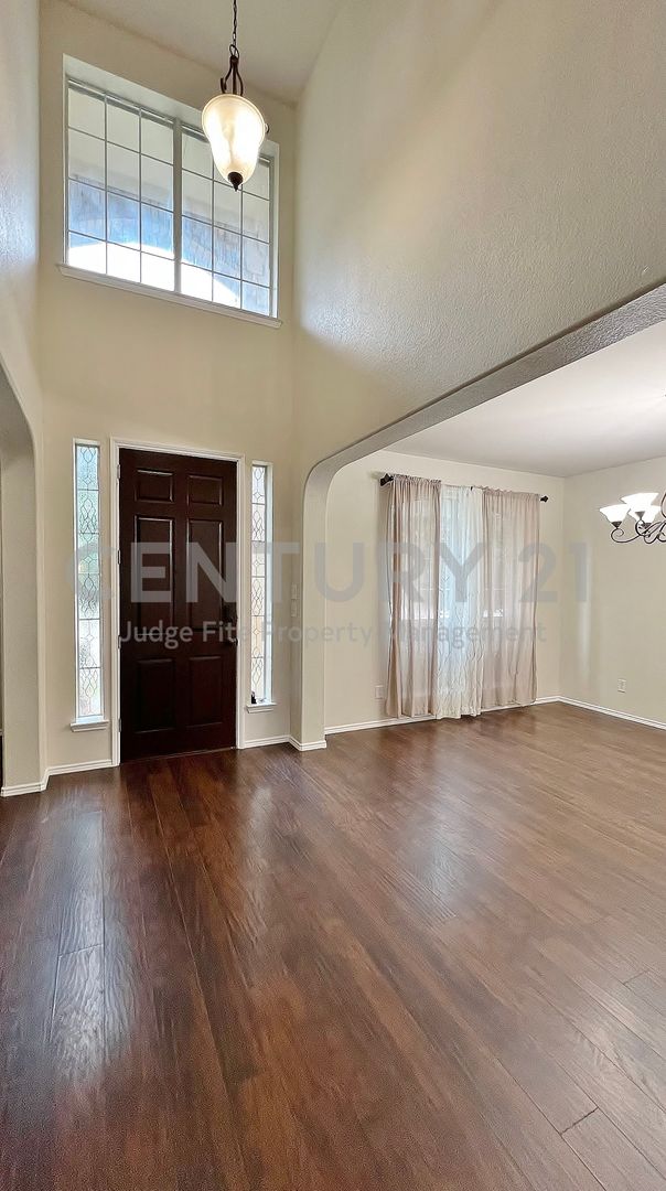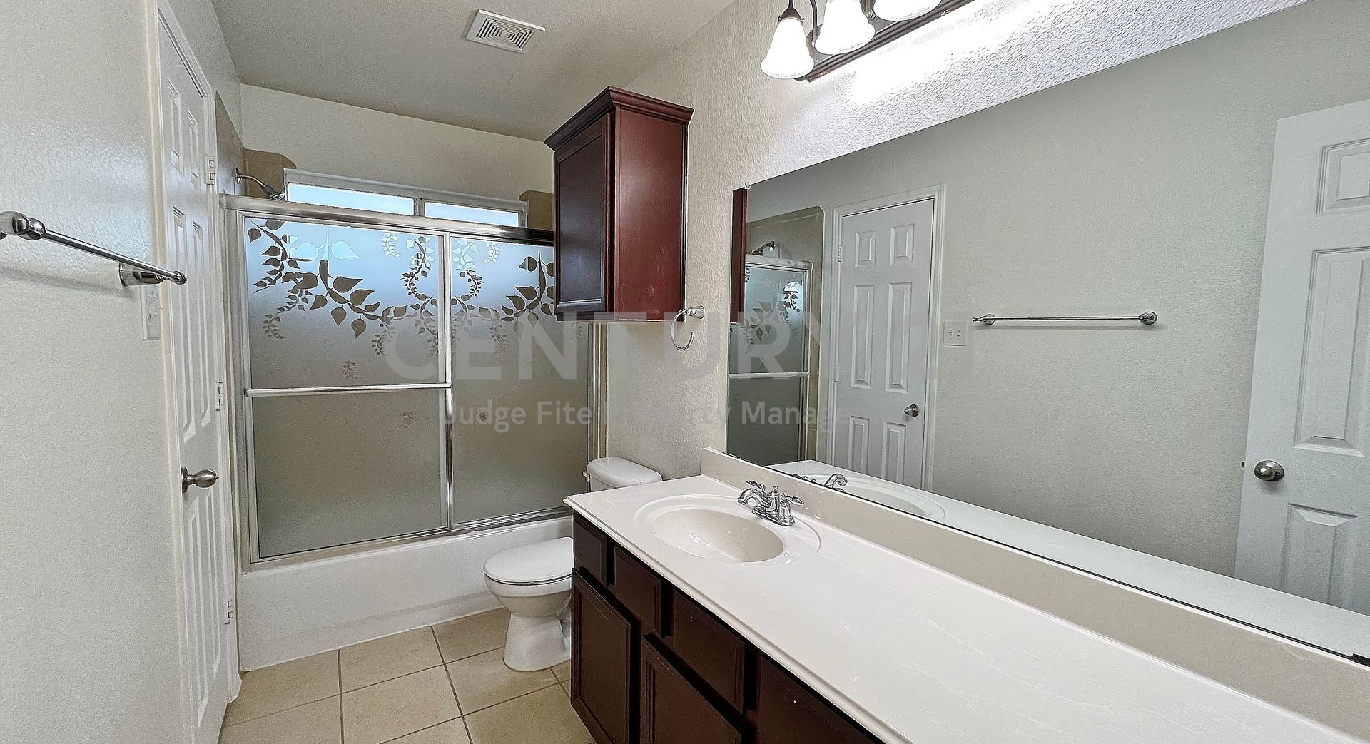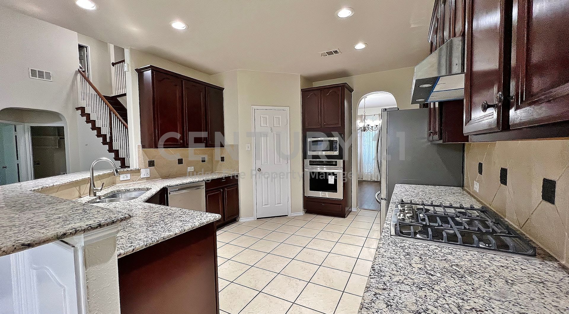 Welcome to this stunning 6-bedroom, 3.5-bathroom two-story residence, where grand architecture meets everyday comfort. Perfectly designed for large families or those who love to entertain, this home offers an expansive layout filled with natural light and premium finishes. Step through the front door into a soaring two-story foyer. The impressive family room features a floor-to-ceiling fireplace and a wall of windows that overlook the backyard. The well equipped kitchen boasts rich espresso cabinetry, sleek granite countertops, stainless steel appliances, and a breakfast bar that opens to the living space. Located on the main level for maximum privacy, the primary suite features a spa-like ensuite complete with dual vanities, a deep corner soaking tub, and a separate glass-enclosed shower. All guest bedrooms are upstairs along with a game room. Small area outside of game room includes connections to add an additional refrigerator. Enjoy a large, fully fenced yard with an open patio, mature trees, and a storage shed—perfect for weekend BBQs and play. Located in a premier community, you’ll have access to a sparkling community pool, pond, park, and playground. Don't miss the chance to lease this versatile and spacious home. Schedule your showing today! Owner must approve all pets.