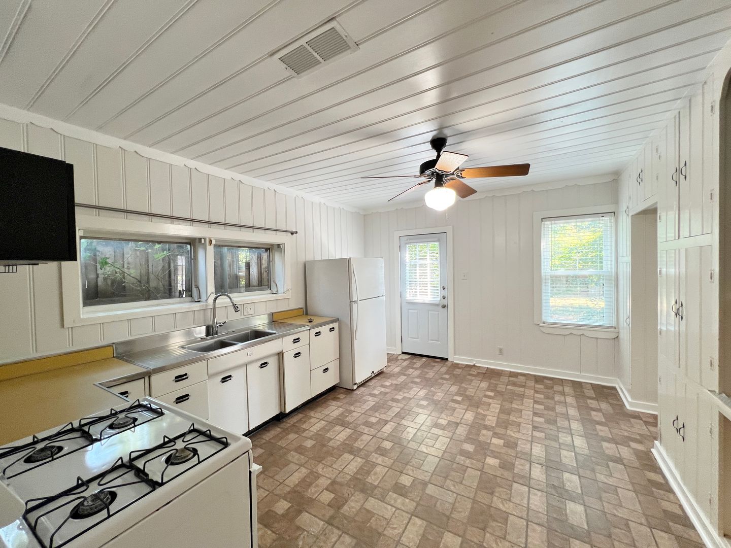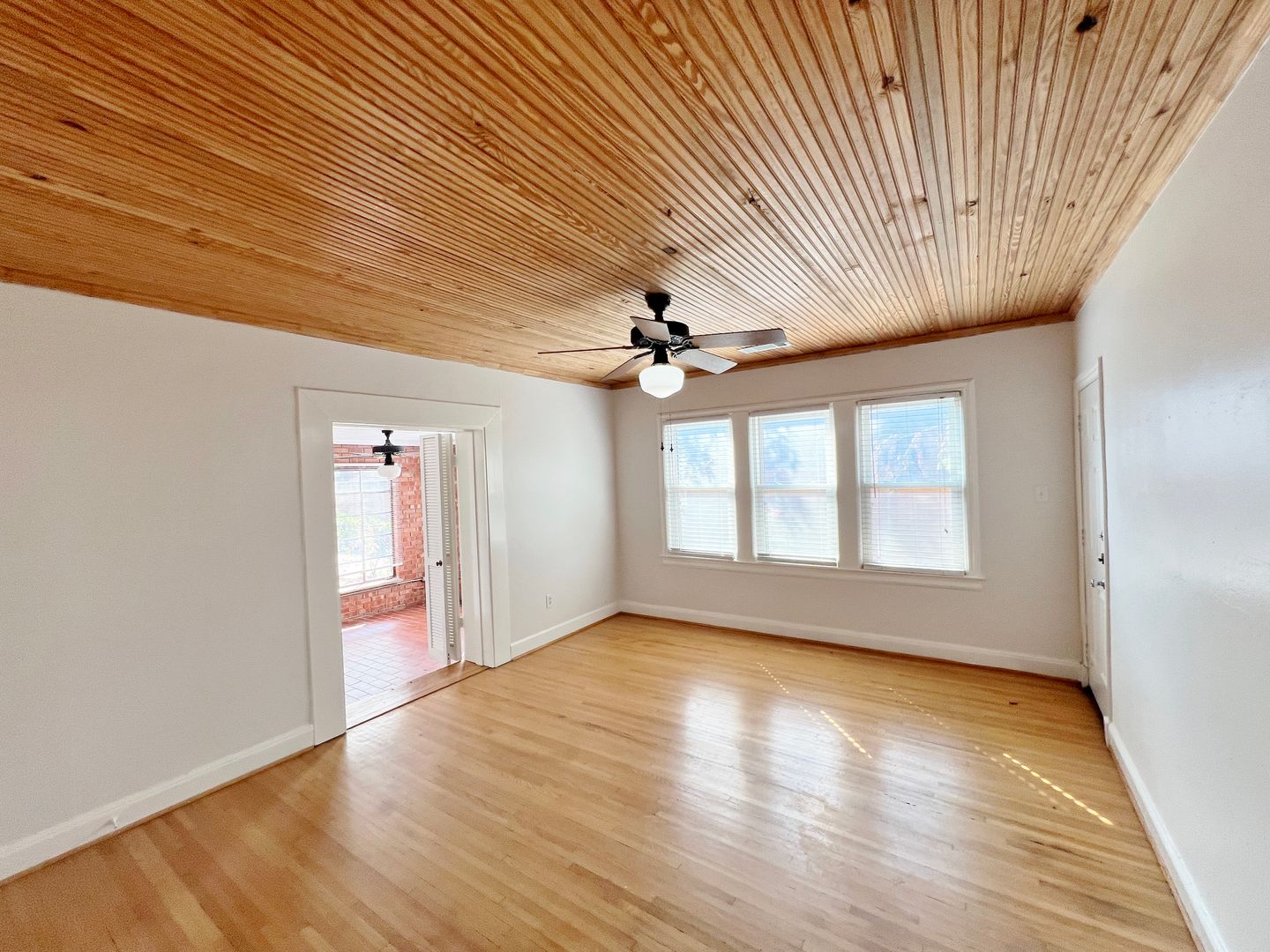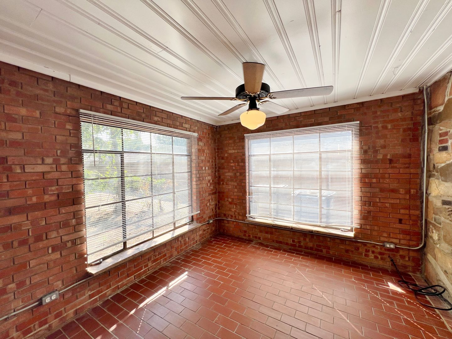 Welcome home to this storybook 2/1 stone cottage full of character and timeless appeal! Nestled beneath mature shade trees, this home greets you with classic curb appeal, a welcoming walkway, and a cozy front porch feel. Step inside to find a bright and open living space featuring gleaming hardwood floors, fresh neutral paint throughout, and abundant natural light streaming through multiple windows. The spacious living room boasts a beautiful white-painted fireplace as its centerpiece, seamlessly flowing into the dining area - perfect for entertaining or family gatherings. The kitchen comes complete with a gas stove, disposal, refrigerator, and TONS of cabinet space providing ample storage space. Both bedrooms offer ceiling fans and walk-in closets. Light and bright sunroom is great for enjoying your morning coffee or snuggling up with a good book. Fenced backyard with open patio extends your living - entertaining space outdoors. With its blend of historic charm and tasteful updates, this home offers warmth, comfort, and style in every corner. Only pets under 50lbs allowed with owner approval. Fireplace is inoperable and not for tenant use.
