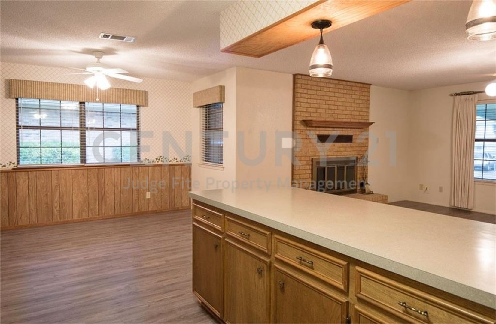 Water view 2/2/2 in Eastwood Island with access to the lake via the neighborhood boat launch and park! Absolutely charming home with open concept floor plan. Pretty wood look flooring throughout with tile in the guest bath. Brick WBFP in the living area. Kitchen offers a built-in microwave, dishwasher, disposal, stove, refrigerator and breakfast bar. Ceiling fans and walk-in closets in both bedrooms. Partially fenced and shaded backyard is perfect for summer time cookouts. Oversized garage with room for workbench. Mabank ISD. Come experience lake living today! Owner must approve all pets.