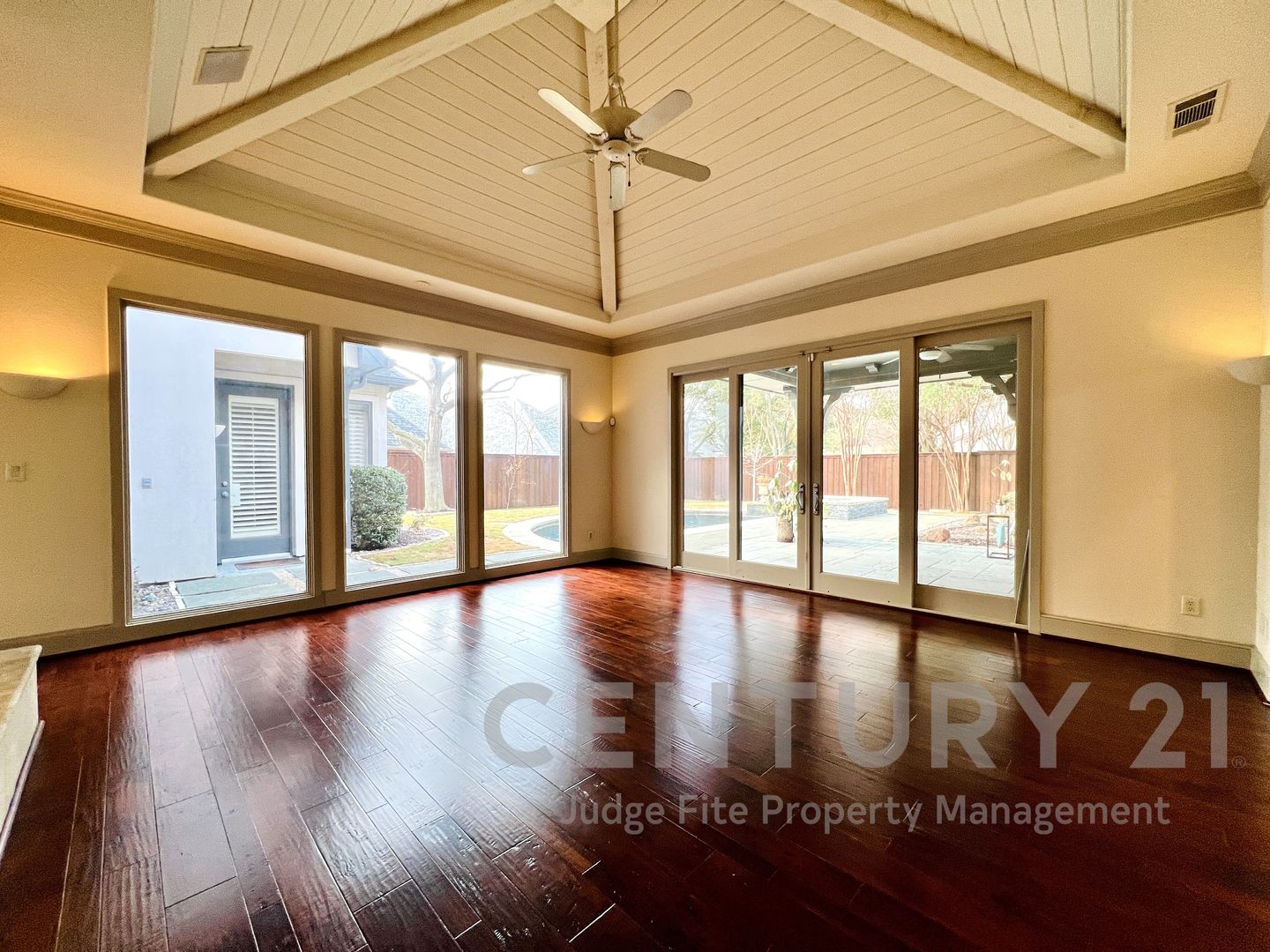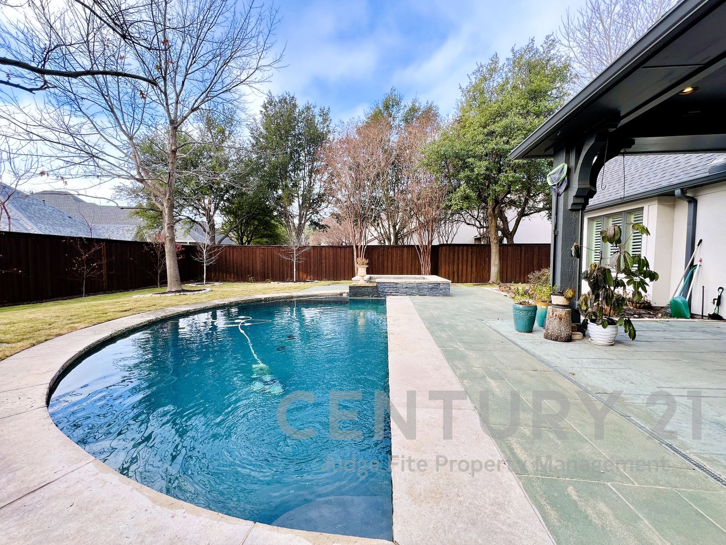 Beautiful, move-in ready luxury home in Addison featuring 3 bedrooms and 2.5 baths. This home welcomes you with a stunning entry and a split-bedroom floor plan. The elegant dining room features a pass-through gas log fireplace and opens to a stylish wet bar complete with multiple wine refrigerators—perfect for entertaining. The spacious living room flows seamlessly into the gourmet kitchen and showcases floor-to-ceiling windows with picturesque views of the backyard oasis. Step outside to enjoy a beautifully designed pool and spa, multiple entertaining areas, and a covered patio ideal for relaxing or hosting guests. The primary suite offers abundant storage, a spa-like bath with jetted tub, separate shower, dual vanities, and multiple walk-in closets. Off the kitchen is a second guest bedroom with access to a half bath, plus a flexible space ideal for a home office with views of the backyard. The luxury kitchen is equipped with stainless steel appliances, a built-in microwave, and a Sub-Zero built-in refrigerator. Upstairs includes a game room, a third guest bedroom with a full bath, and ample attic storage. Pool and lawn care are included. Pets are welcome with owner approval. Renters insurance required.