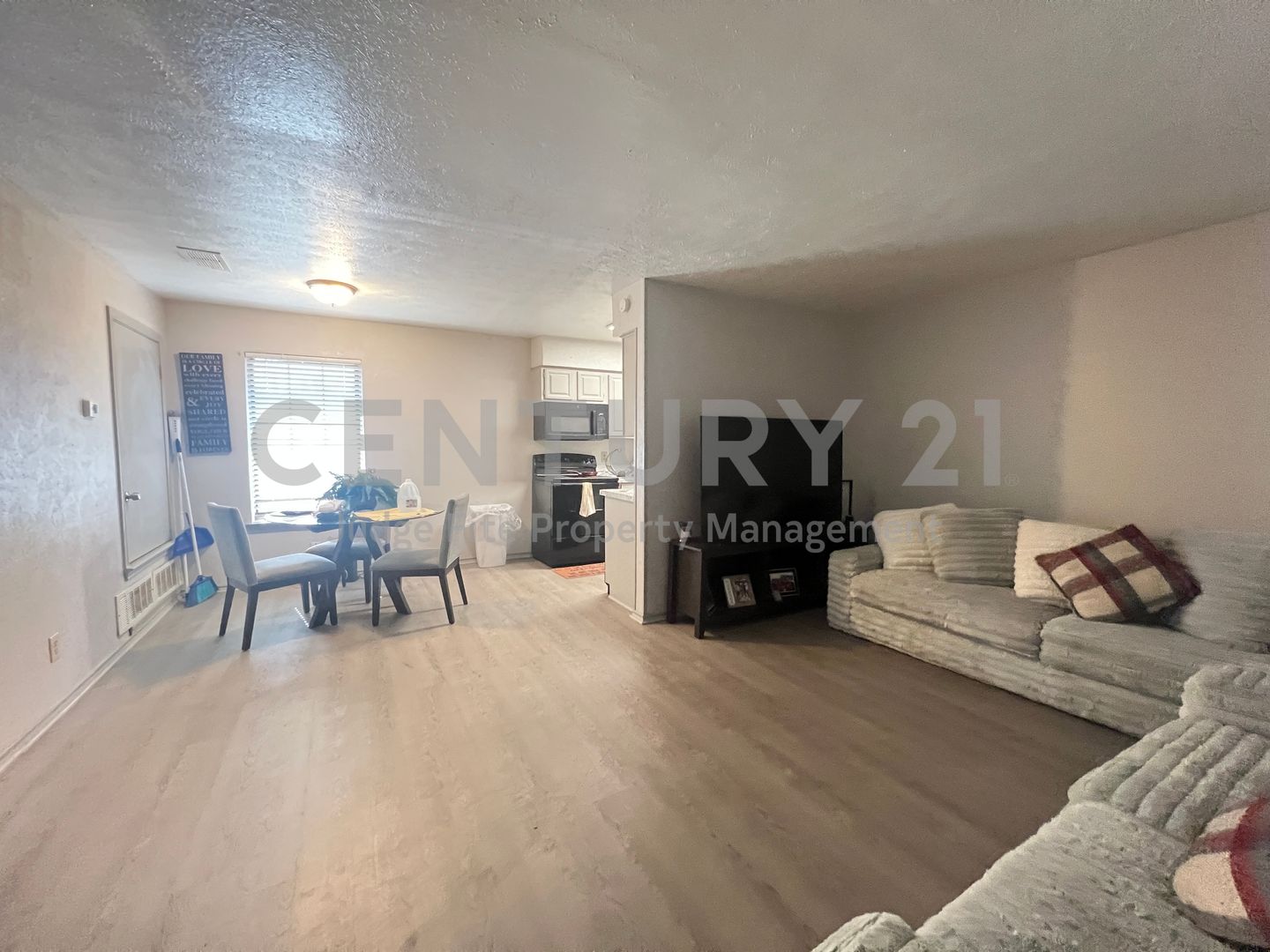 Interior unit apartment featuring all hard surface flooring throughout. This spacious 2-bedroom, 1.5-bathroom layout offers a convenient Jack-and-Jill bath, with each bedroom having its own walk-in closet plus a private toilet and sink en-suite. The large living room flows seamlessly into the dining area, creating an open and inviting space. Galley kitchen is equipped with an electric range, microwave, and refrigerator. Water included! Only 1 pet allowed with approval. $40.00 monthly pet rent required in addition to rent. $500.00 pet deposit / $250.00 is refundable. 12 month lease term only.