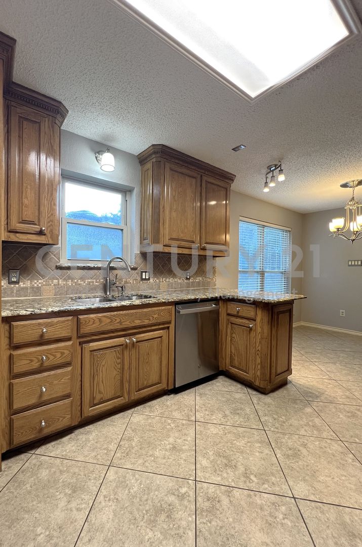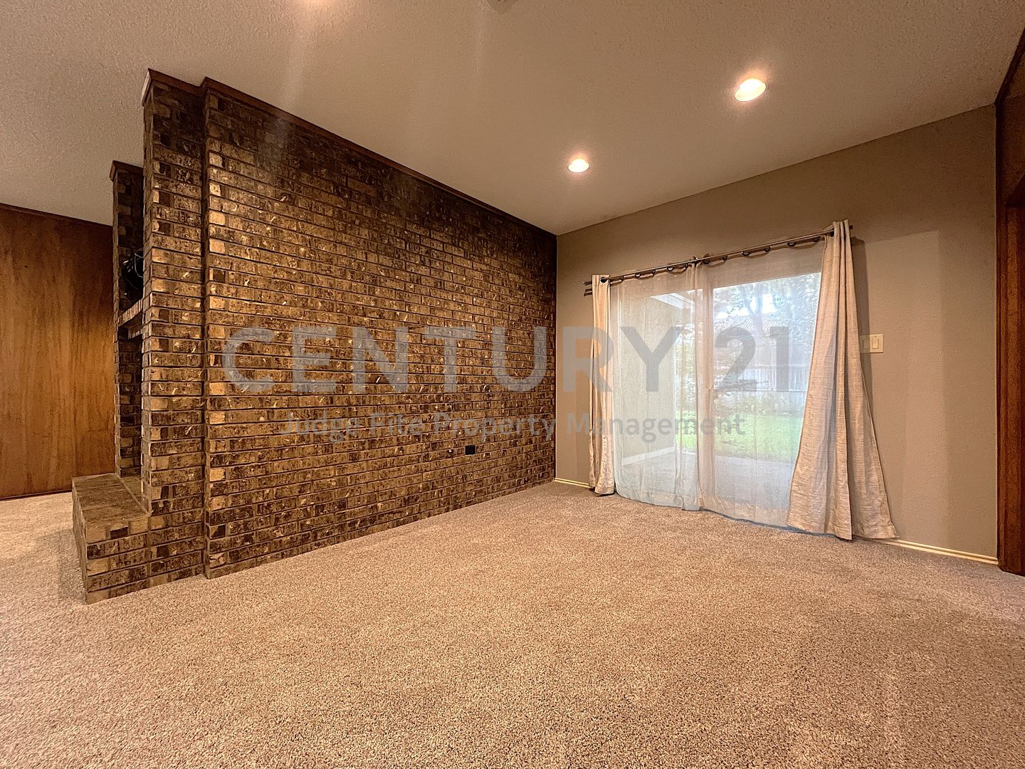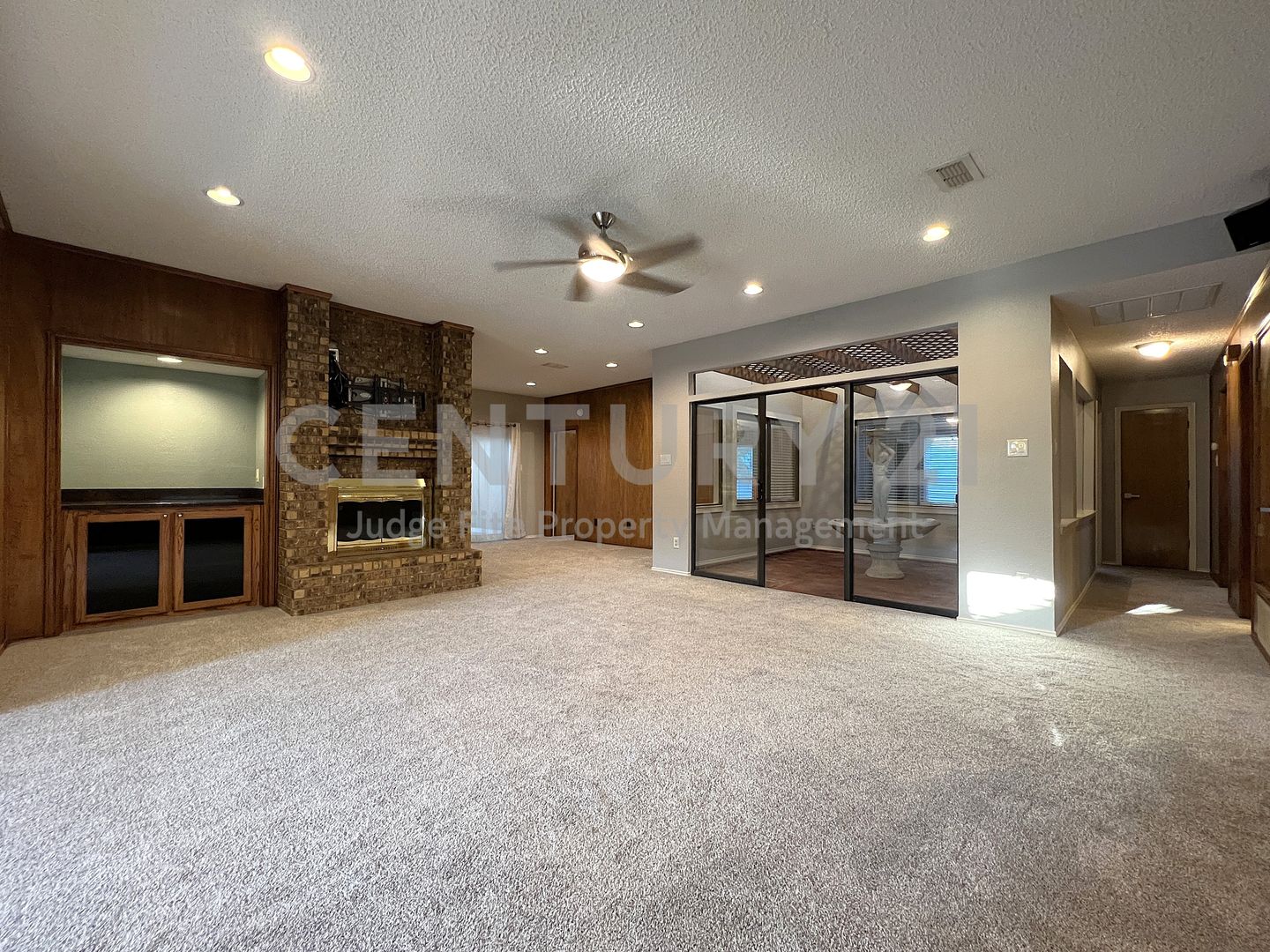 Spacious and inviting, this single-story 3-bedroom, 2-bathroom home with a 2-car garage is ideally located in the heart of Bedford. Thoughtfully updated throughout, it features a beautifully renovated kitchen and bathrooms that blend style and function. At the center of the home, you'll find an enclosed, air-conditioned atrium with skylights—a bright and tranquil space ideal for an indoor garden or reading nook. The generous living area showcases warm wood paneling and a charming wood-burning brick fireplace, creating a cozy and welcoming atmosphere. The galley-style kitchen is equipped with sleek granite countertops, stainless steel appliances, and ample cabinetry. The spacious primary suite includes dual vanity areas, a garden tub, separate shower, and dual walk-in closets. Additional highlights include a hall bath with dual sinks, ceiling fans throughout, a fenced backyard with an open patio, a sprinkler system, and a covered 2-car garage. Owner must approve all pets. Owner maintains lawn.