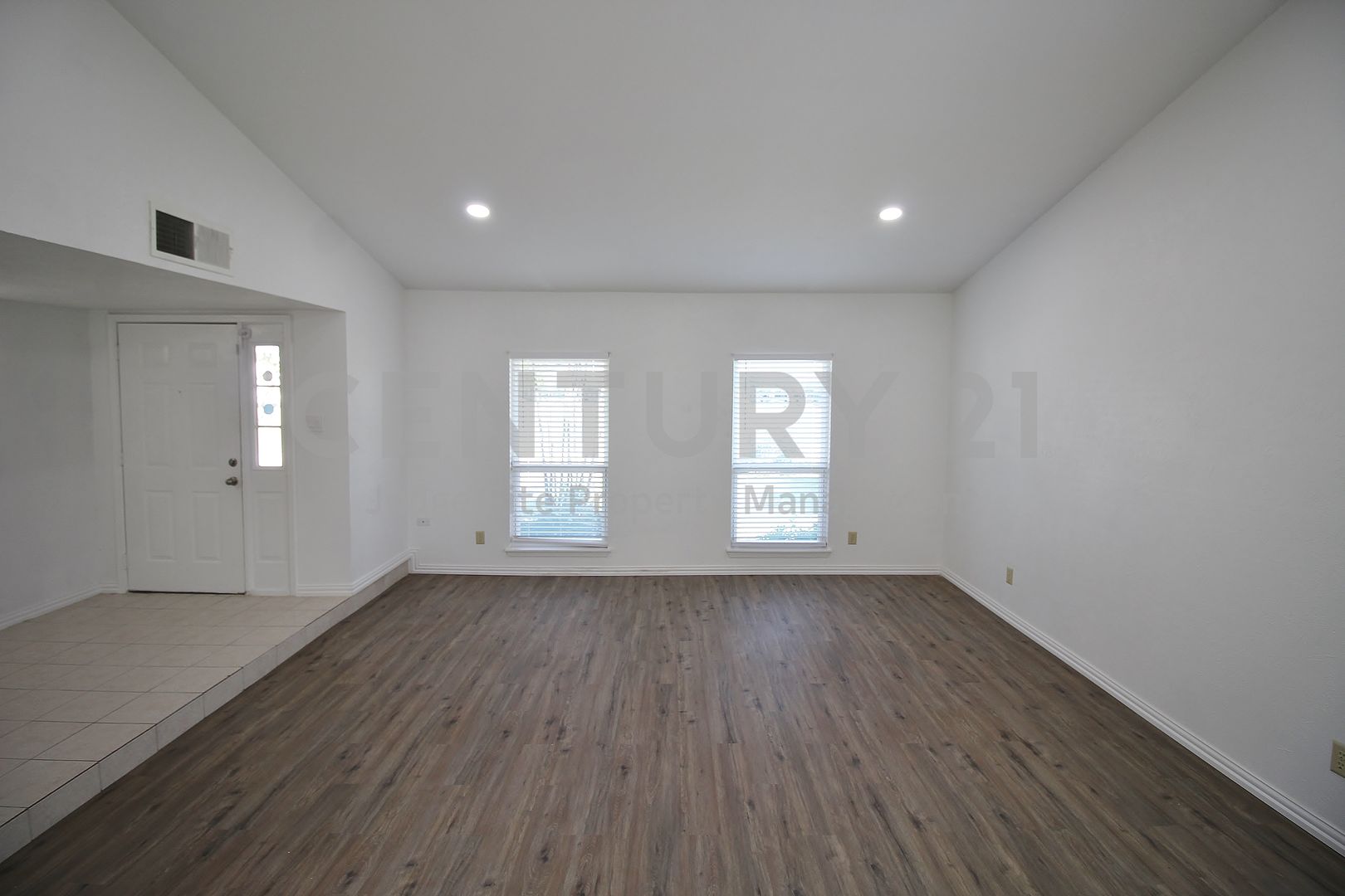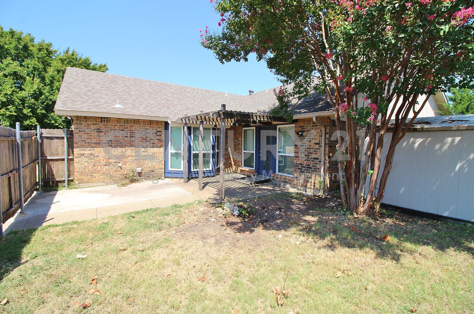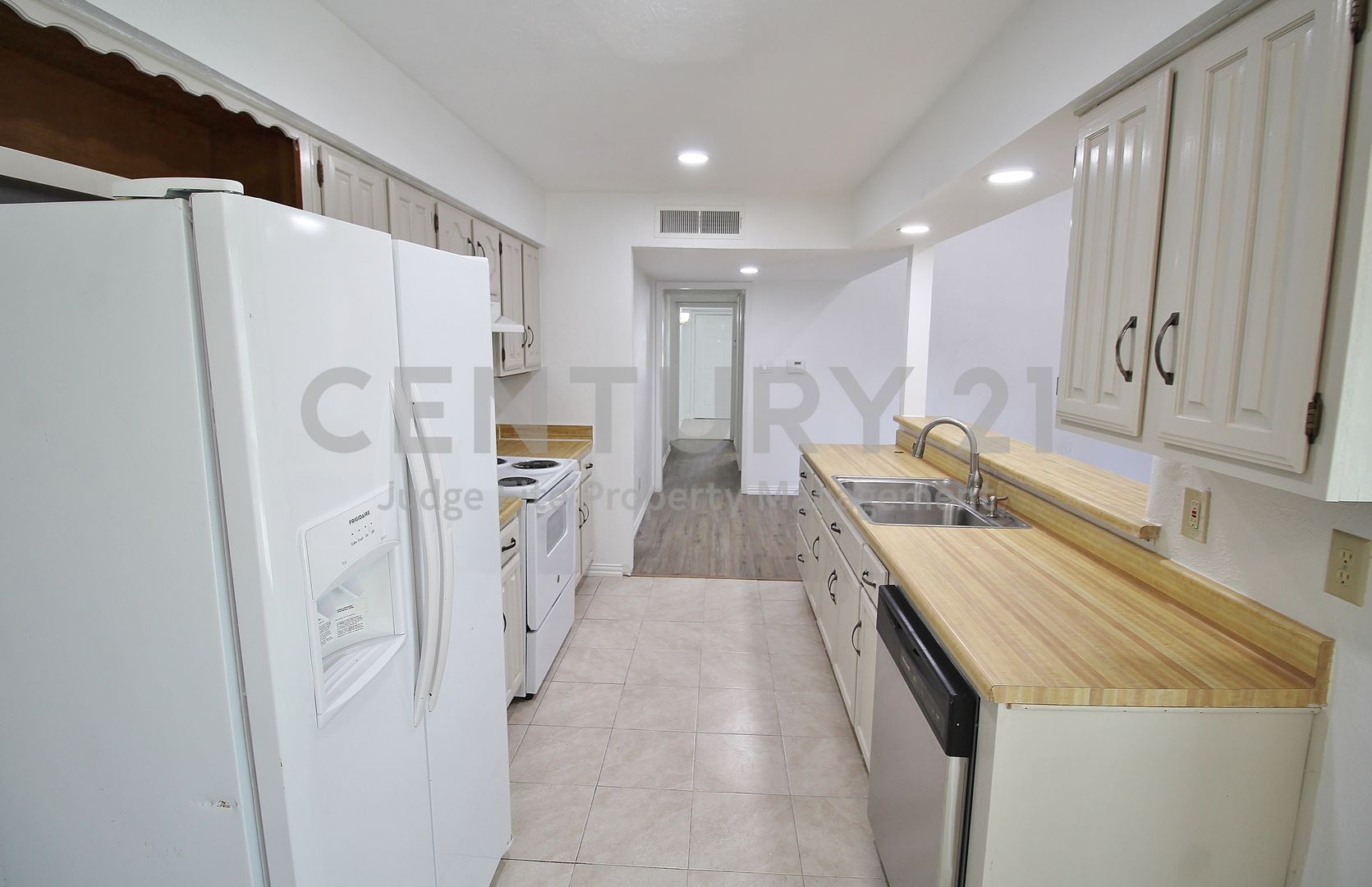 This residence offers 4 bedrooms and 2 full bathrooms, encompassing approximately 1,755 square feet of living space. The home features an inviting front porch leading into an open living and dining area with vaulted ceilings, wet bar and abundant natural light. The kitchen is comes equipped with a dishwasher, electric range open to a bay windowed breakfast nook, adjoining a second living area that includes a brick fireplace flanked by bookshelves and a wall of windows. The primary suite offers an en-suite bathroom with dual sinks and a walk-in closet. Three additional bedrooms, a full bathroom with dual sinks, and a spacious utility room with an extra sink complete the home. Additional features include a fenced backyard with pergola covered patio and a storage shed. Refrigerator, washer & dryer are also included for your convenience. Don't miss your opportunity to lease this beautiful home! Call NOW! Owner must approve all pets. 12 month lease term only.