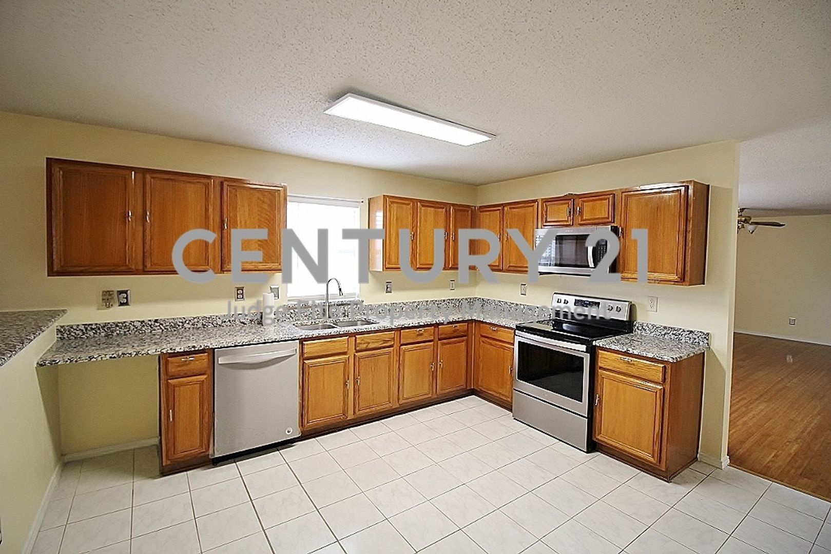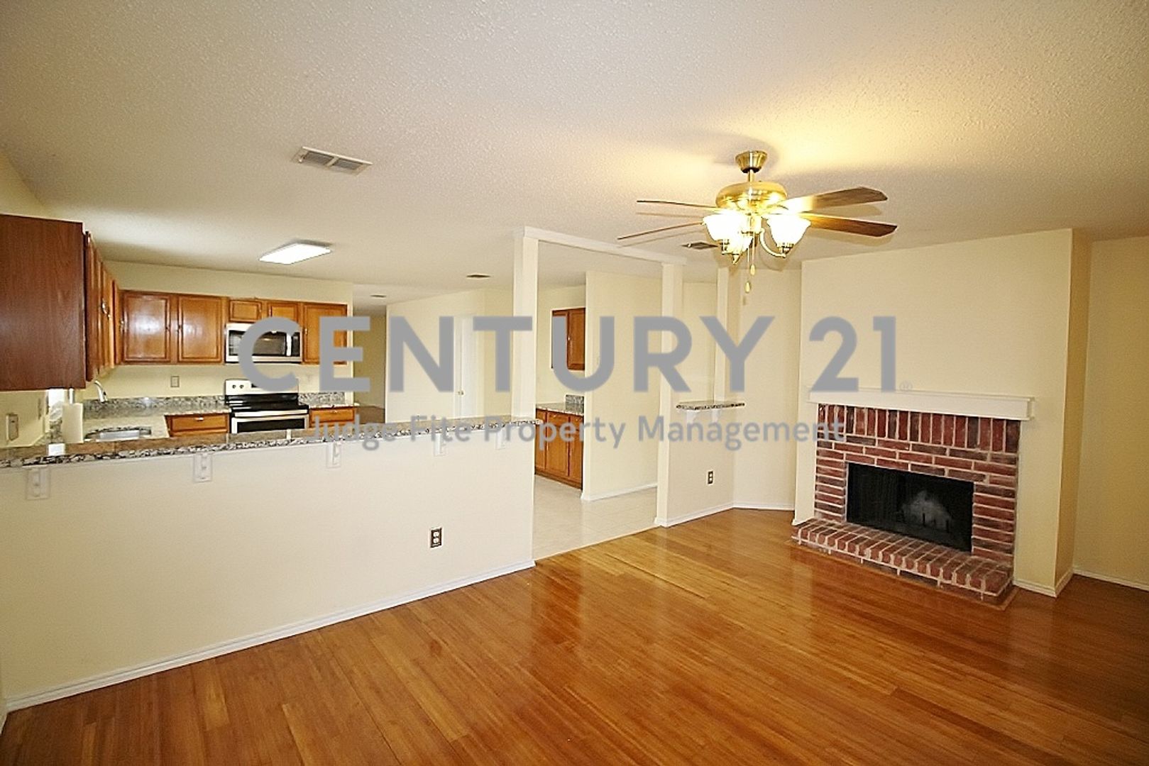 Wonderful 4/2/2 in MANSFIELD ISD for rent! Spacious floor plan with 2 living areas, beautiful wood look & ceramic tile flooring and granite countertops. Formal living & dining combo area makes entertaining easy. Nicely updated kitchen with stainless steel appliances is open to the family room with a brick WBFP. Large primary suite offers dual sinks and a walk-in closet. Covered patio in the fenced backyard. Full size utility area, ceiling fans and sprinkler system included. Easy access to 360 and Joe Pool Lake. Owner must approve all pets.